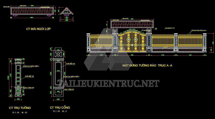 Tài liệu này cung cấp bản vẽ chi tiết về cổng tường rào, một sản phẩm dành cho kiến trúc sư và kỹ sư xây dựng đang tìm kiếm những giải pháp thiết kế chuyên nghiệp và thẩm mỹ.