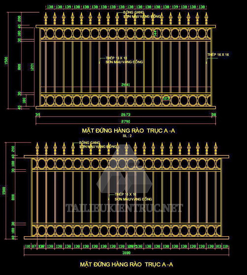 Các chi tiết kỹ thuật như kích thước, chất liệu sắt hộp, và màu sơn đều được chỉ rõ, giúp quá trình thi công diễn ra suôn sẻ và đảm bảo chất lượng cao.