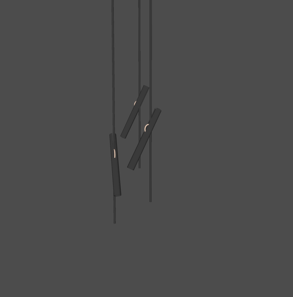 Hình ảnh cho thấy một bộ đèn treo với thiết kế thanh dài, đặc trưng với phong cách tối giản và hiện đại. Các thanh đèn làm từ vật liệu màu đen bóng, tạo nên vẻ ngoài trang nhã và sang trọng. Ánh sáng từ đèn được chiếu thẳng xuống, tạo nên không gian chiếu sáng tập trung và nổi bật.