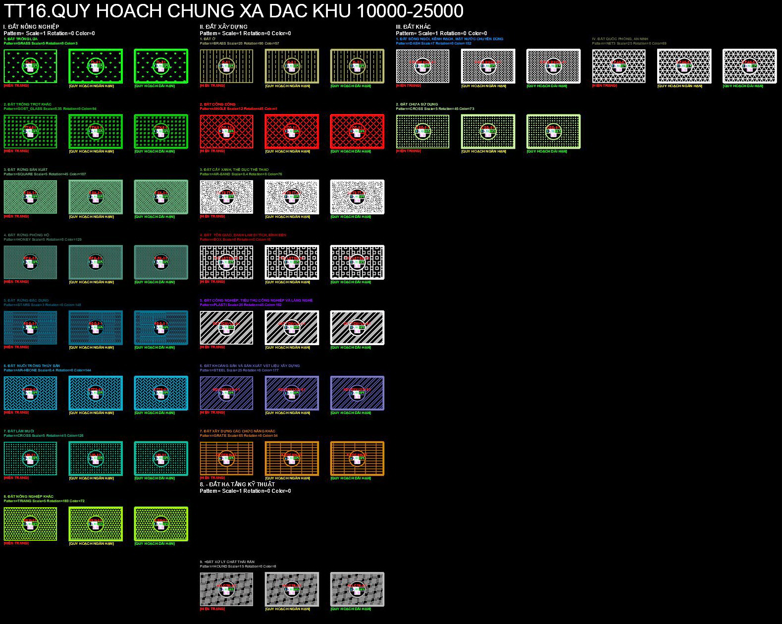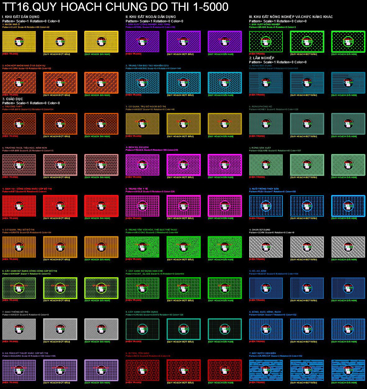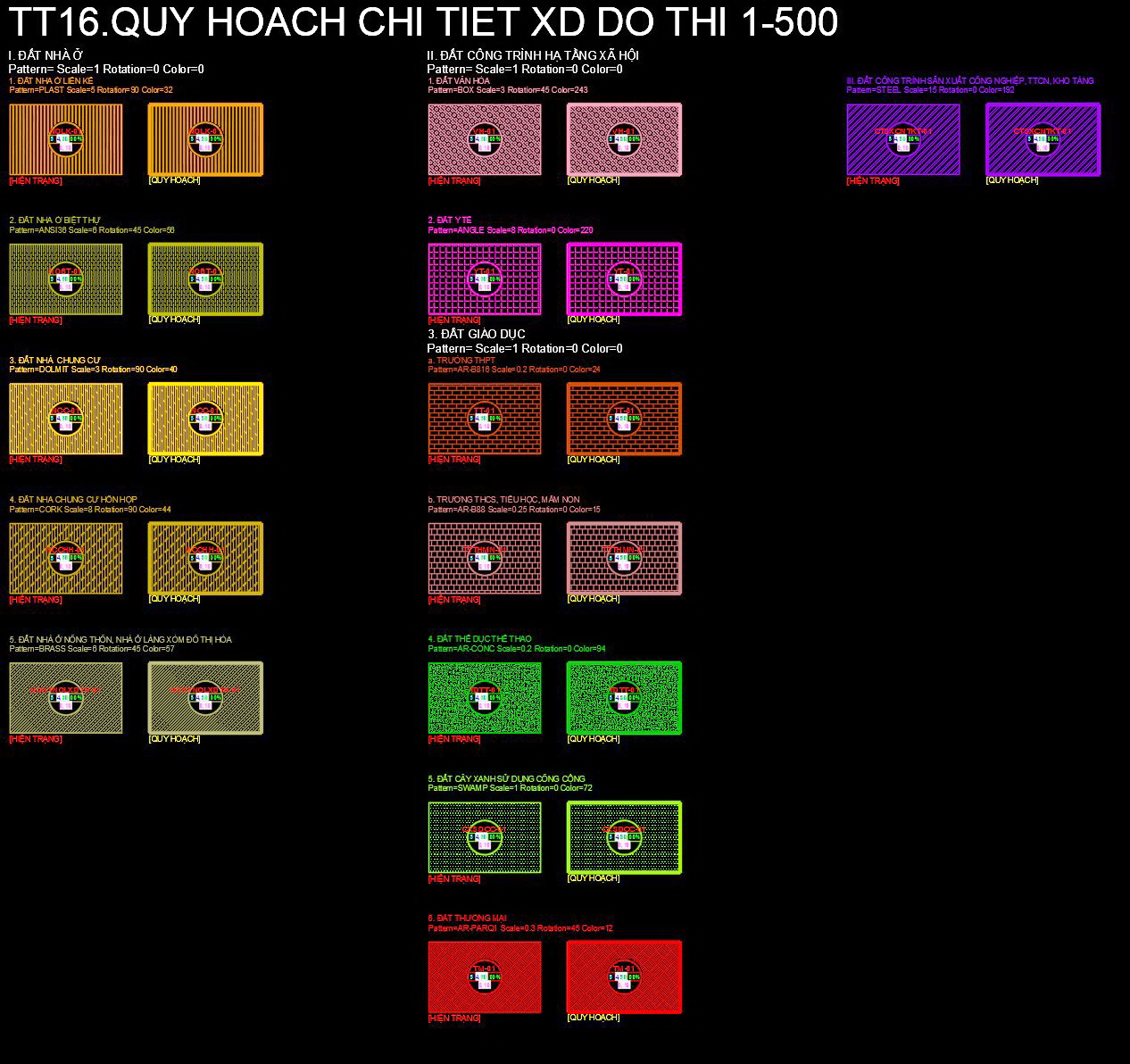 một cái nhìn chi tiết về các layer hatch dành cho quy hoạch loại đất, với mục tiêu hỗ trợ chuyên nghiệp trong các dự án thiết kế đô thị và xây dựng.