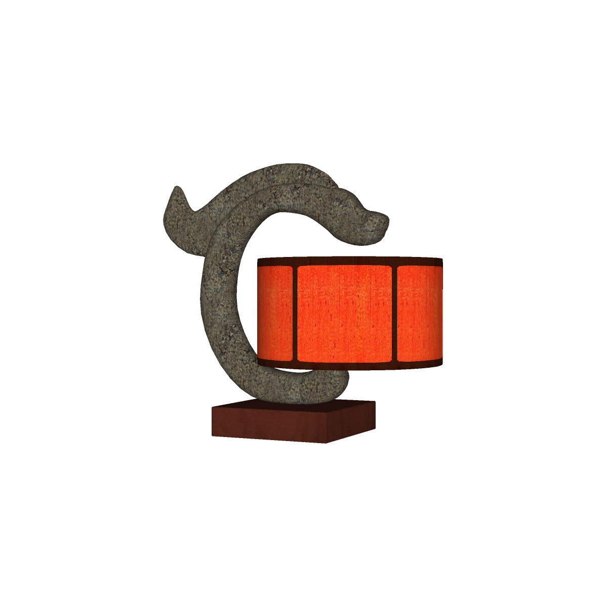 Chiếc đèn này được thiết kế với hình dạng một chú cá heo uốn lượn, ôm trọn lấy phần chao đèn. Tông màu đỏ cam nổi bật của chao đèn kết hợp với chất liệu giả đá làm nổi bật vẻ đẹp sáng sủa và độc đáo. Các chi tiết được gia công tỉ mỉ tạo nên sự cân đối và hài hòa.