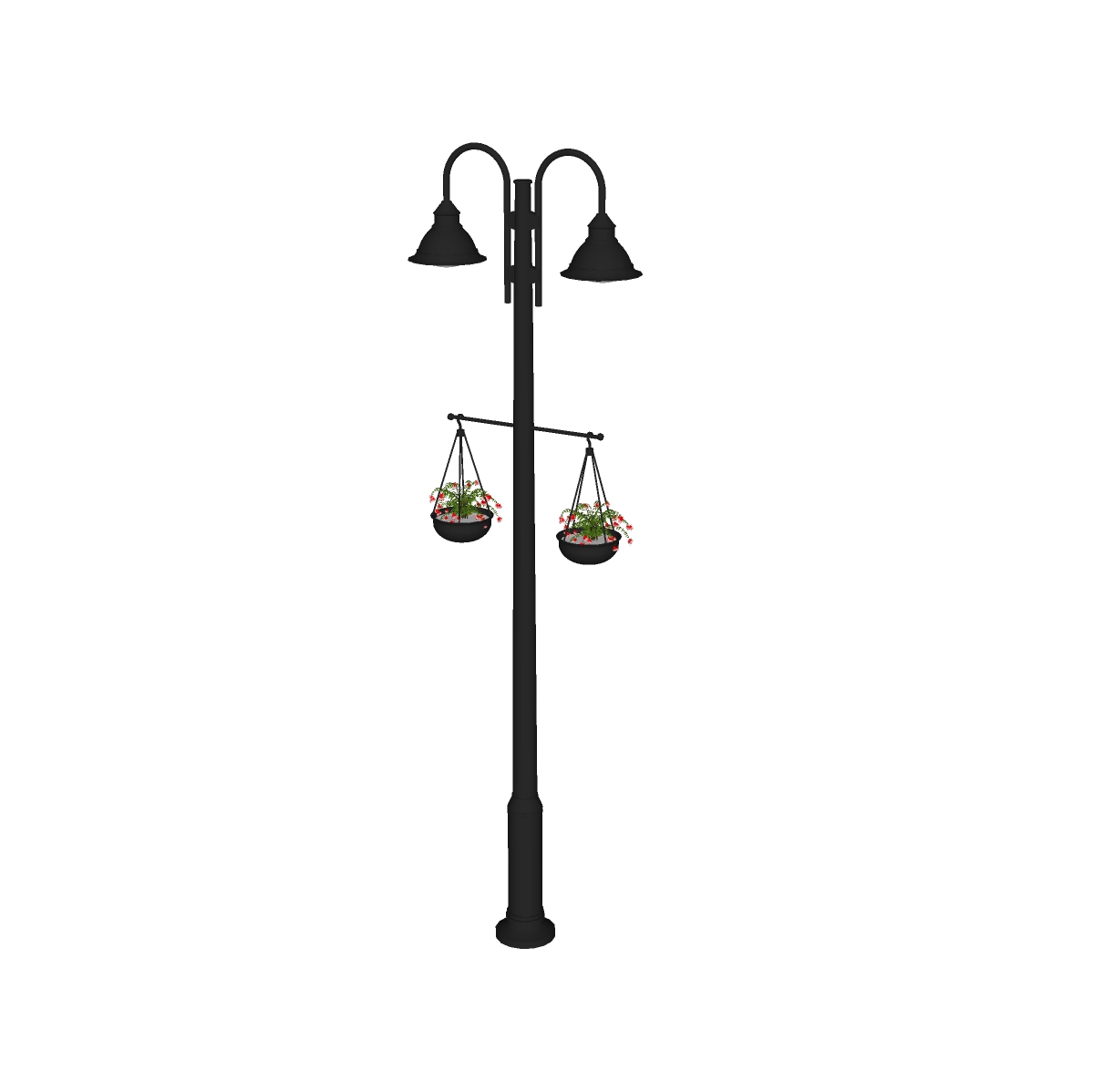 Đèn đường kết hợp chậu hoa trang trí không chỉ giúp chiếu sáng mà còn có chức năng trang trí, tạo điểm nhấn xanh cho đô thị. Việc tích hợp chậu hoa vào cột đèn không chỉ tiết kiệm không gian mà còn đóng góp vào việc cải thiện môi trường và sức khỏe tinh thần của người sử dụng. Đèn phù hợp để lắp đặt tại các khu vực công cộng như công viên, khu trung tâm thương mại, và các đường phố lớn.