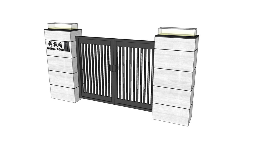 Mẫu cổng này được thiết kế với vẻ đẹp tinh tế và hiện đại, sử dụng vật liệu bền vững và bố trí thông minh. Hình ảnh đầu tiên cho thấy một không gian cổng rộng mở với các thanh gỗ hoặc kim loại mảnh mai, tạo nên một cảm giác thanh lịch. Cột cổng làm từ đá hoặc vật liệu giả đá, tạo cảm giác vững chắc và sang trọng. Hình ảnh thứ hai thể hiện một bản vẽ 3D của cổng, cho thấy cấu trúc chi tiết và định hình rõ ràng của thiết kế.