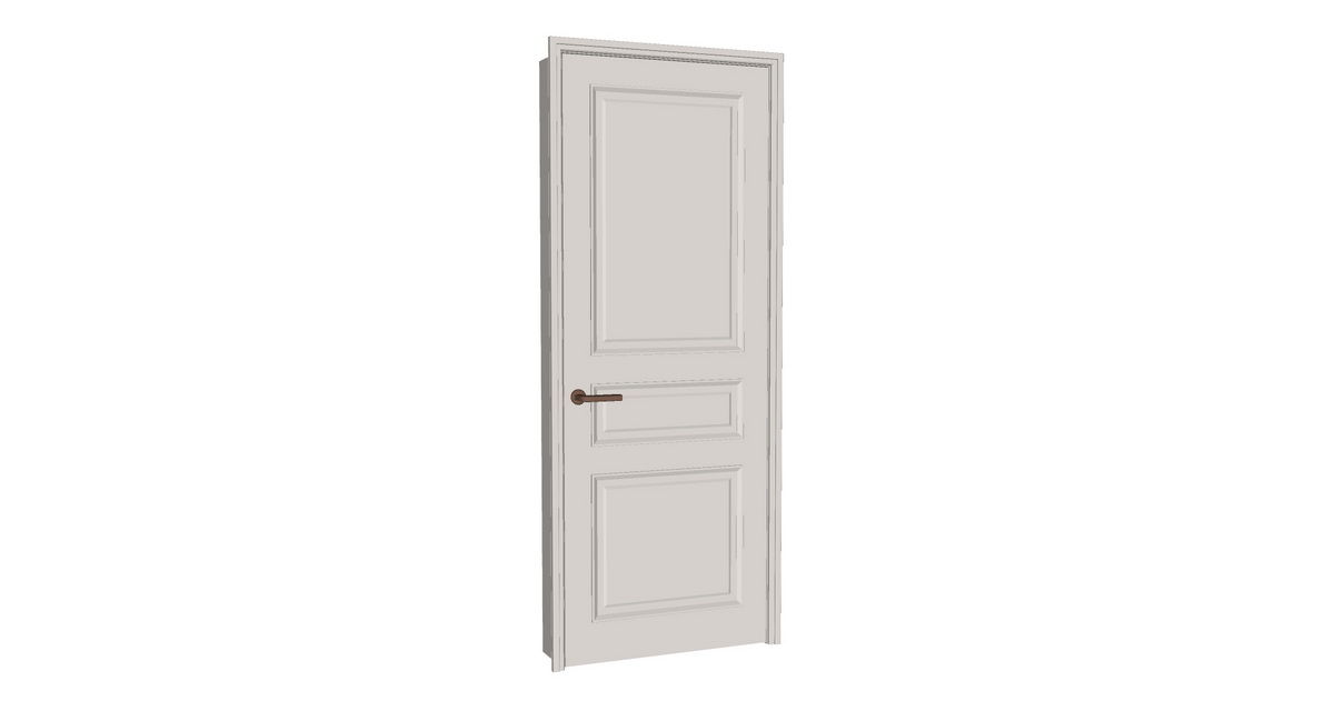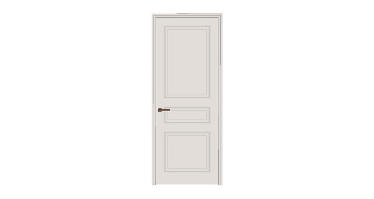 Hình ảnh trên cho thấy một mẫu cửa nội thất với phong cách tối giản nhưng sang trọng. Thiết kế cửa mang lại vẻ đẹp tinh tế với tông màu trắng trung tính, dễ dàng phối hợp với các không gian kiến trúc hiện đại. Cánh cửa được chia thành ba phần với các chi tiết phào chỉ tạo điểm nhấn, không chỉ tăng thêm phần thẩm mỹ mà còn thể hiện được sự chắc chắn và bền bỉ.