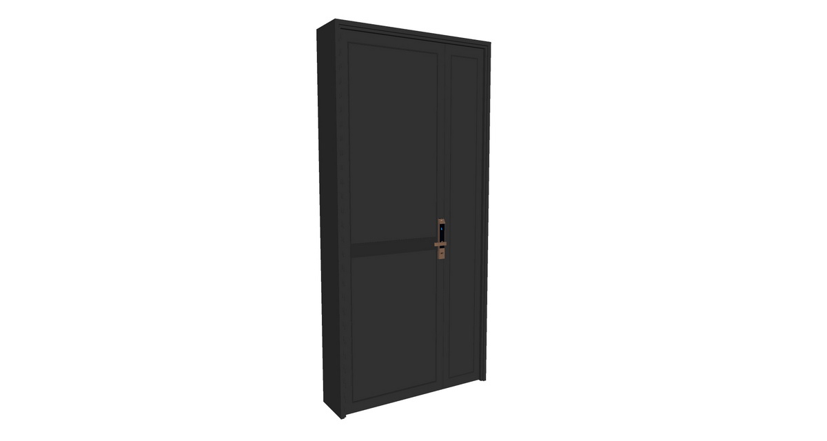 Mẫu cửa này được thiết kế với kiểu dáng tinh tế, phù hợp cho nhiều không gian nội thất khác nhau. Bề mặt của cửa có màu đen sang trọng, tạo điểm nhấn mạnh mẽ cho không gian. Tay nắm cửa đi kèm với khóa số thông minh, đảm bảo tính năng an toàn và tiện lợi cao.
