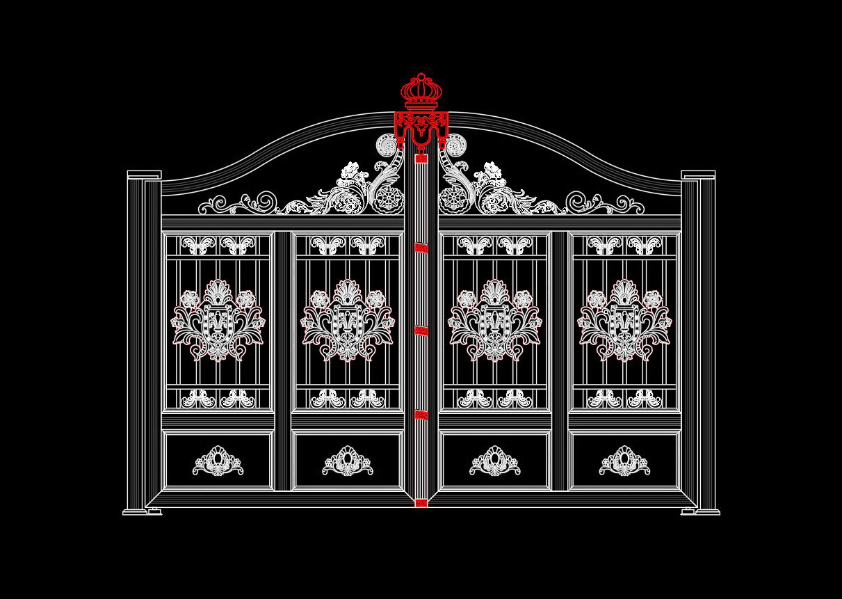 • 24. Thư viện file DWG cổng nhôm đúc phong cách cổ điển hoa văn hoàng gia