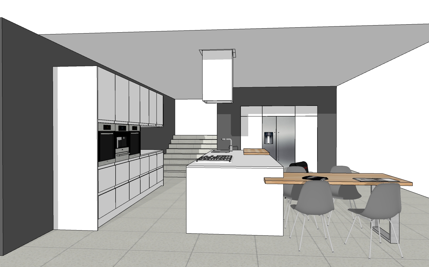 Ứng dụng thực tế của thiết kế này đa dạng, từ các dự án nhà ở đến căn hộ hiện đại. Với việc tích hợp các thiết bị và vật dụng thông minh, nhà bếp không chỉ phục vụ cho việc nấu ăn mà còn là không gian kết nối các thành viên trong gia đình. Các chi tiết nhỏ như bề mặt bếp bằng đá, ghế chân sắt có đệm, và bàn ăn bằng gỗ cao cấp đều tạo nên sự khác biệt và giá trị sử dụng lâu dài.
