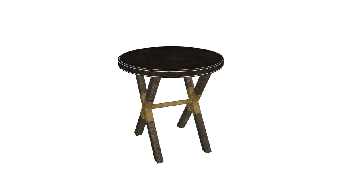 Bàn tròn này có thể được sử dụng trong phòng khách để tạo điểm nhấn, hoặc làm bàn trà, bàn đọc sách. Kết cấu chân bàn bằng gỗ được tạo dáng chữ X, kết hợp với các chi tiết kim loại màu vàng đồng, không chỉ tạo sự vững chắc mà còn thêm phần tinh tế. Kích thước vừa phải giúp sản phẩm dễ dàng được bố trí trong nhiều không gian khác nhau mà không gây cảm giác chật chội.