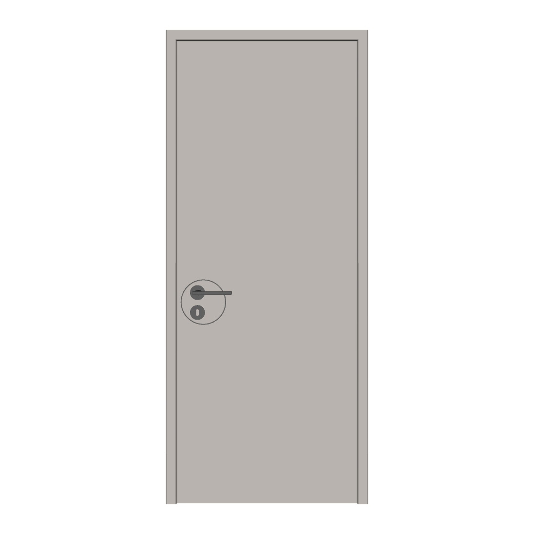 Cửa gỗ hiện đại này nổi bật với thiết kế tối giản, mặt trước phẳng và màu sáng trung tính, mang lại cảm giác thanh lịch và hiện đại cho không gian sống. Tay nắm cửa bằng kim loại đen mờ có thiết kế dễ dùng và bền bỉ, tăng phần sang trọng cho sản phẩm.