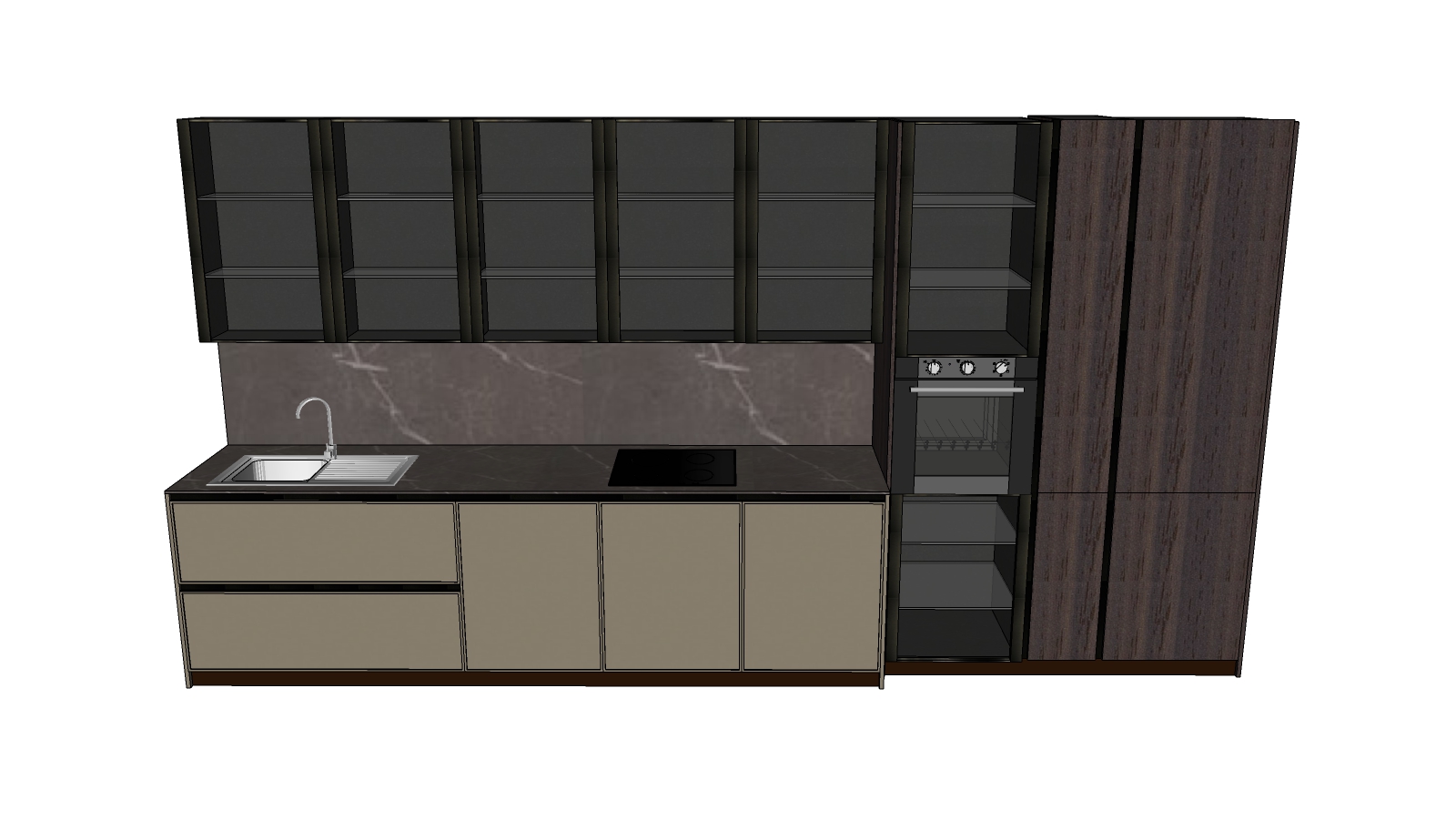 File Sketchup tủ bếp kịch trần gỗ Walnut sang trọng