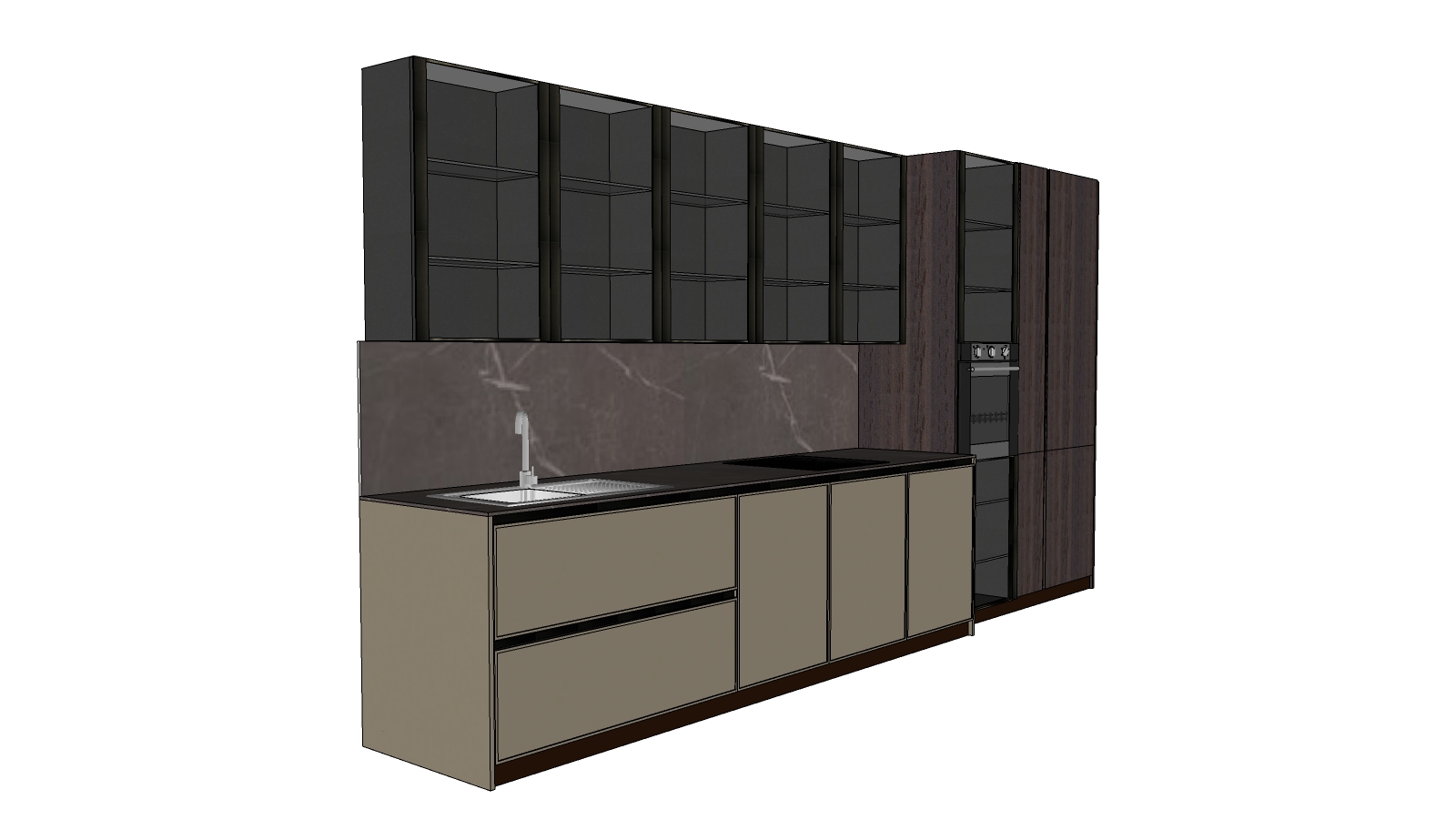 18. File Sketchup tủ bếp kịch trần gỗ Walnut sang trọng