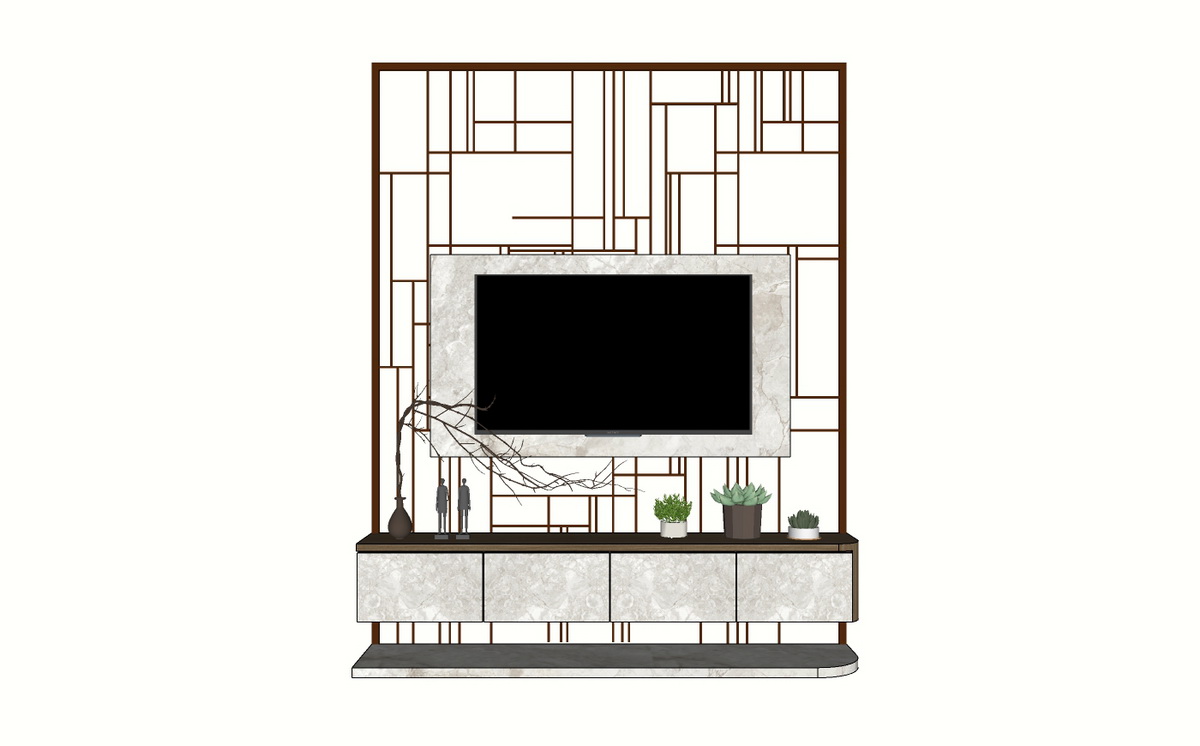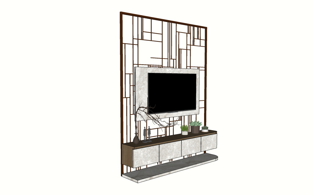 File sketchup vách tivi CNC kim loại hệ khung gỗ minimalist