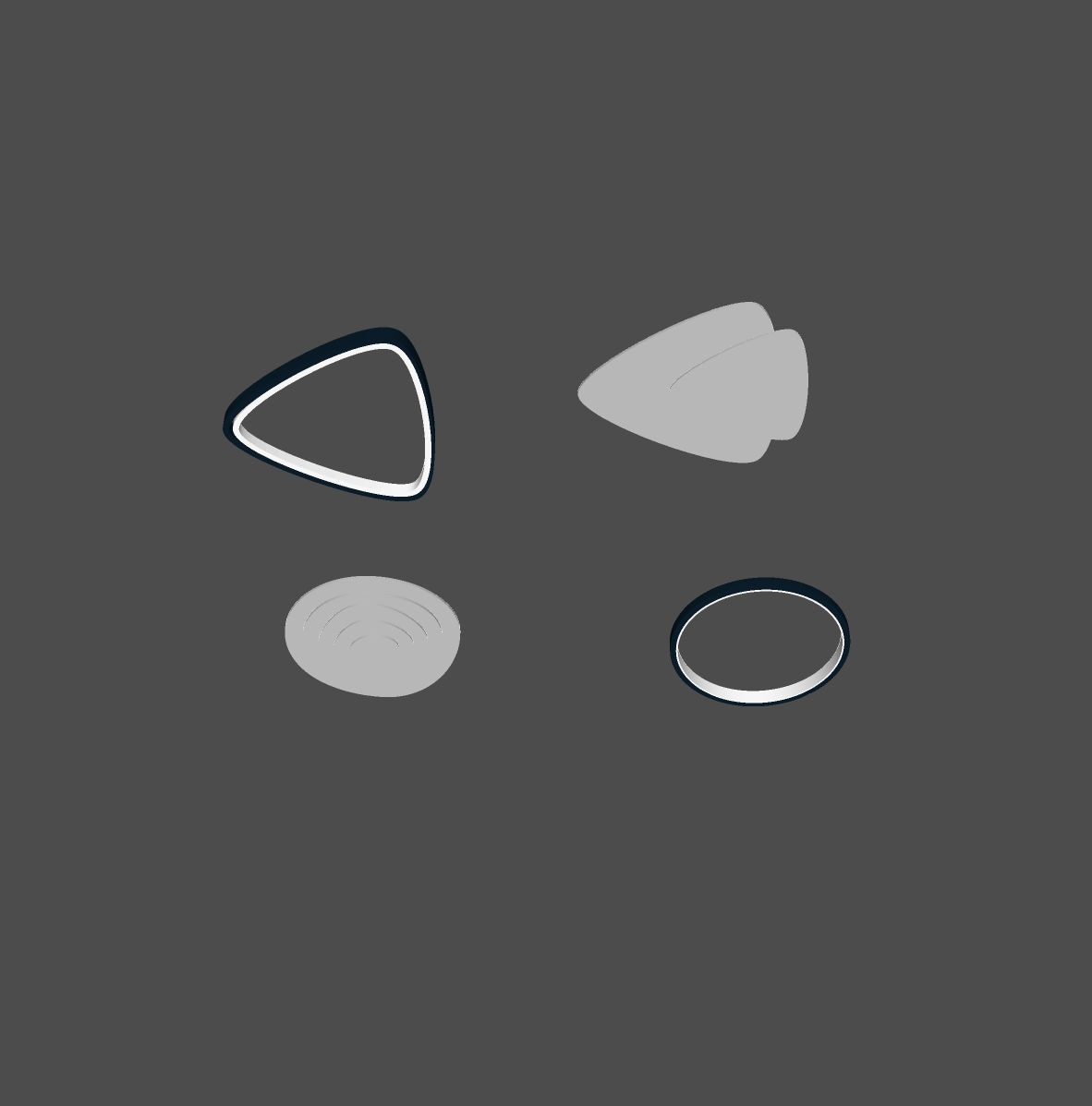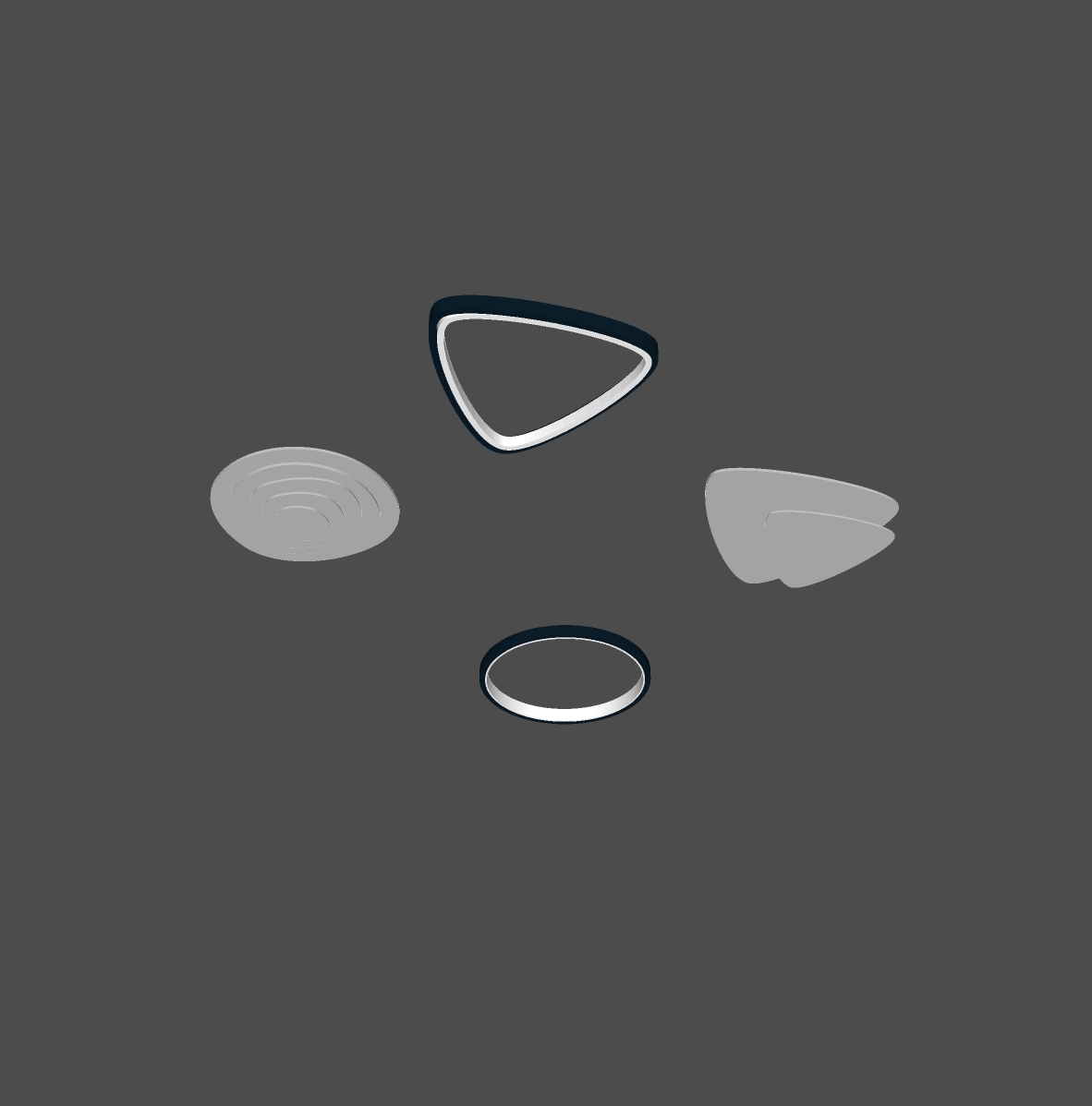 Bộ đèn trần này được thiết kế đặc biệt với bốn hình dạng độc đáo, tạo thành một bố cục hút mắt trên trần nhà. Mỗi bóng đèn có các đường nét mềm mại và hiện đại, giúp tạo hiệu ứng ánh sáng lan tỏa một cách tối ưu.
