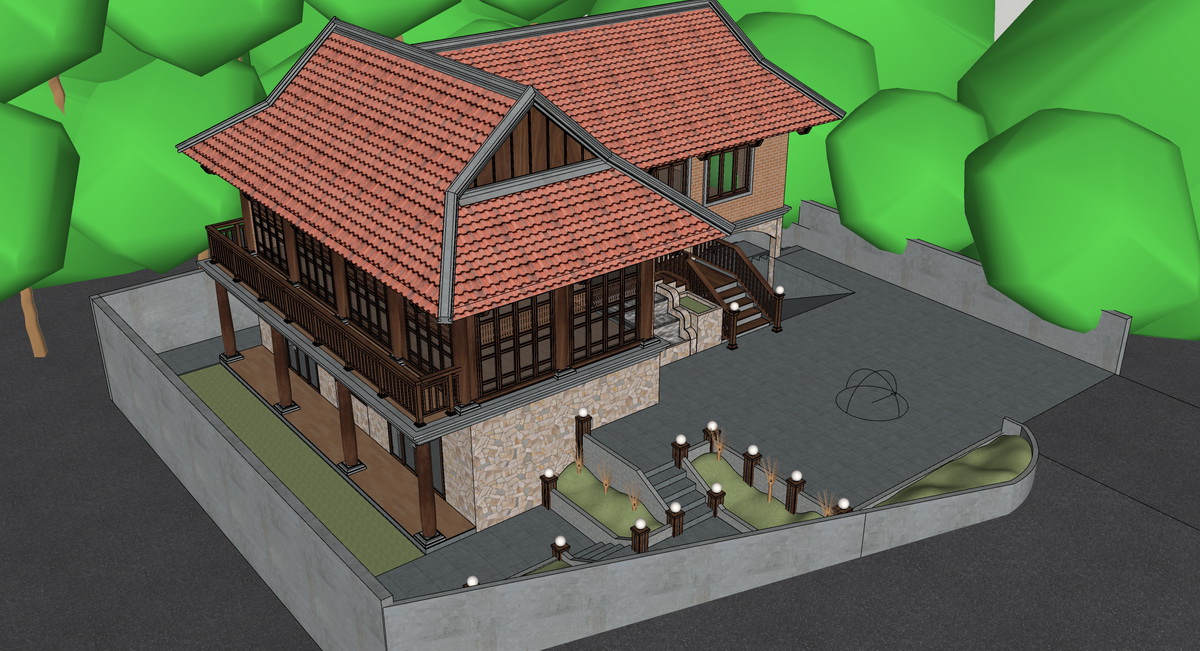 Tài liệu này cung cấp một cái nhìn tổng quan về thiết kế kiến trúc của một ngôi nhà với phong cách truyền thống kết hợp hiện đại.