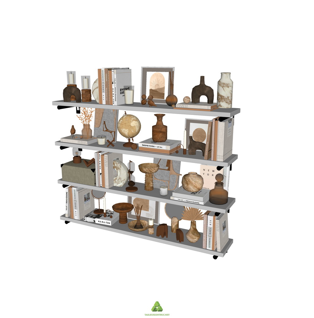 • Chất lượng chuyên nghiệp: Các sản phẩm trên kệ có thiết kế tỉ mỉ và tinh xảo, từ sách cho tới các món đồ trang trí gốm sứ.