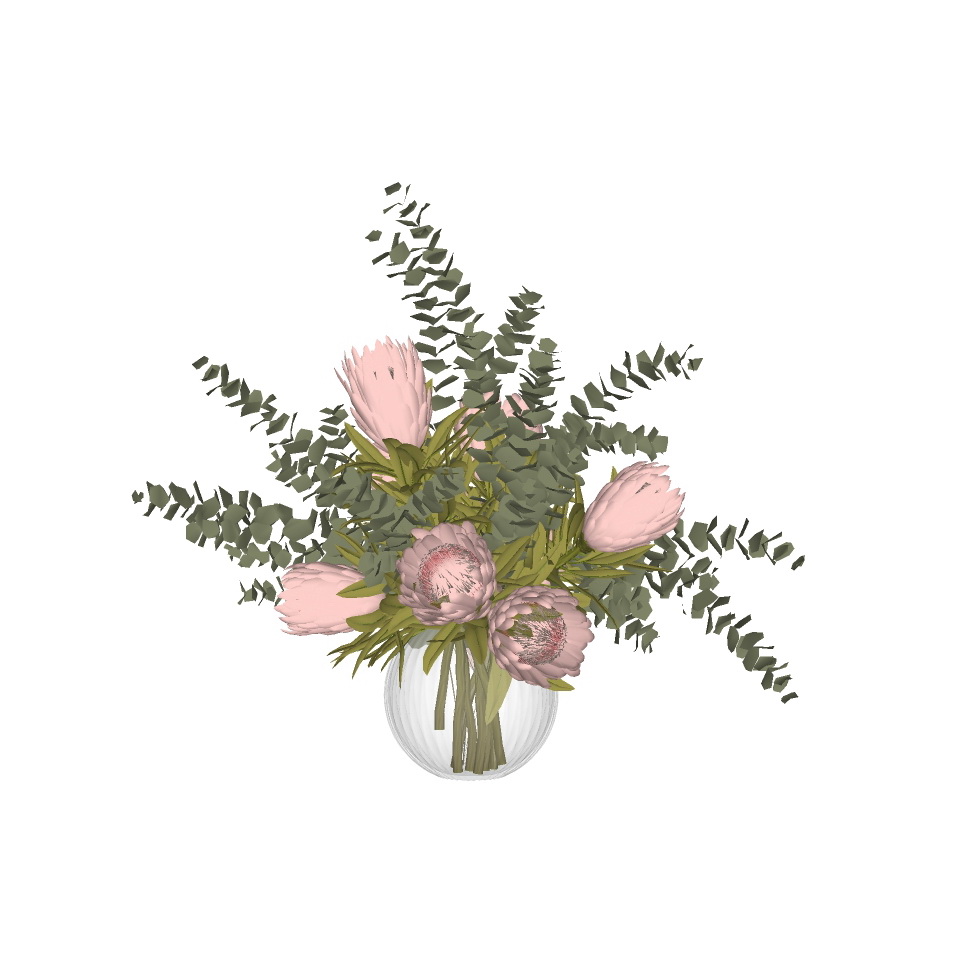 Trong các hình ảnh được đưa ra, chúng ta thấy một mẫu bình hoa tinh tế với hoa và lá được phối hợp tỉ mỉ. Sự chi tiết trong từng cánh hoa màu hồng và lá xanh tạo nên một bố cục thẩm mỹ tuyệt vời, thể hiện sự tài tình của người thiết kế.