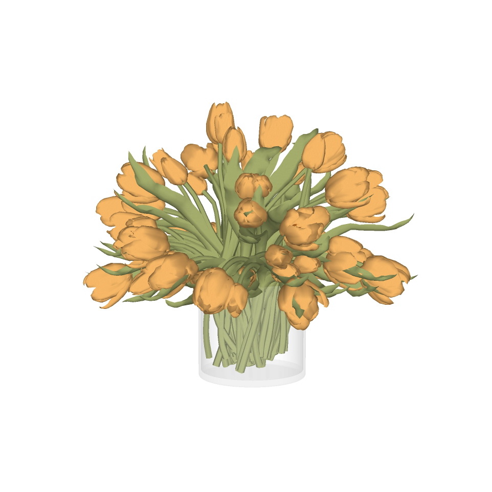 Mô hình hoa tulip 3D trong hình ảnh thứ hai tái hiện chính xác và sống động từng chi tiết của bó hoa thật. Từ cánh hoa đến màu sắc và cấu trúc lá, mọi thứ đều được thể hiện một cách chân thực và chi tiết, giúp các nhà thiết kế dễ dàng tích hợp vào các dự án của mình mà không phải lo lắng về sự không nhất quán về mặt thẩm mỹ.