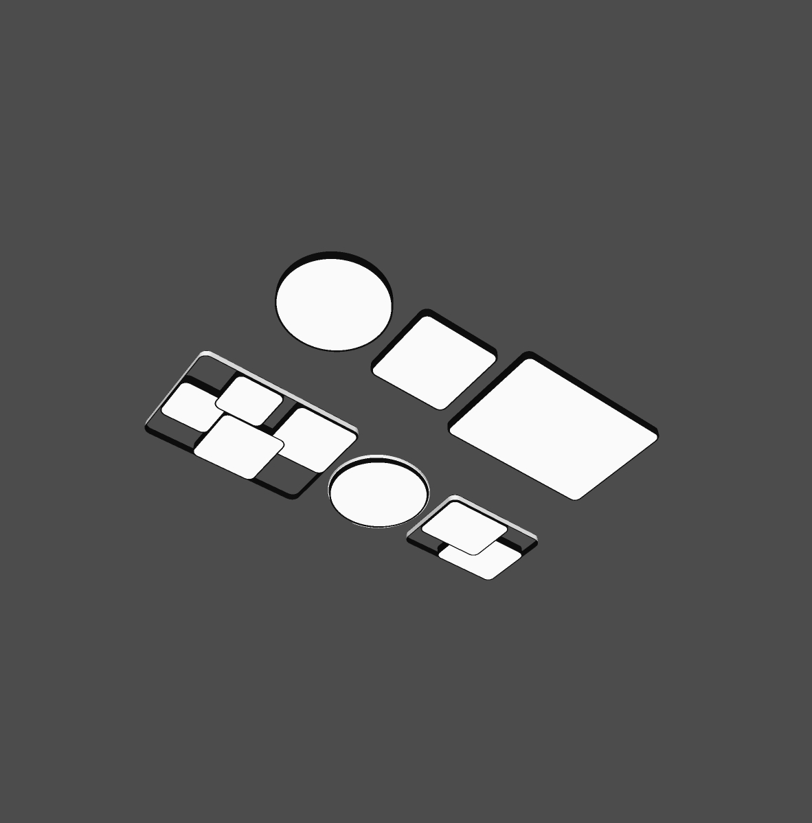Nhìn vào các hình ảnh, chúng ta thấy một mẫu đèn trần được thiết kế với nhiều hình dạng khác nhau như tròn, vuông, và chữ nhật. Hệ thống ánh sáng được bố trí tinh tế trên bề mặt phẳng với gam màu trung tính, tạo cảm giác sang trọng và thanh lịch.