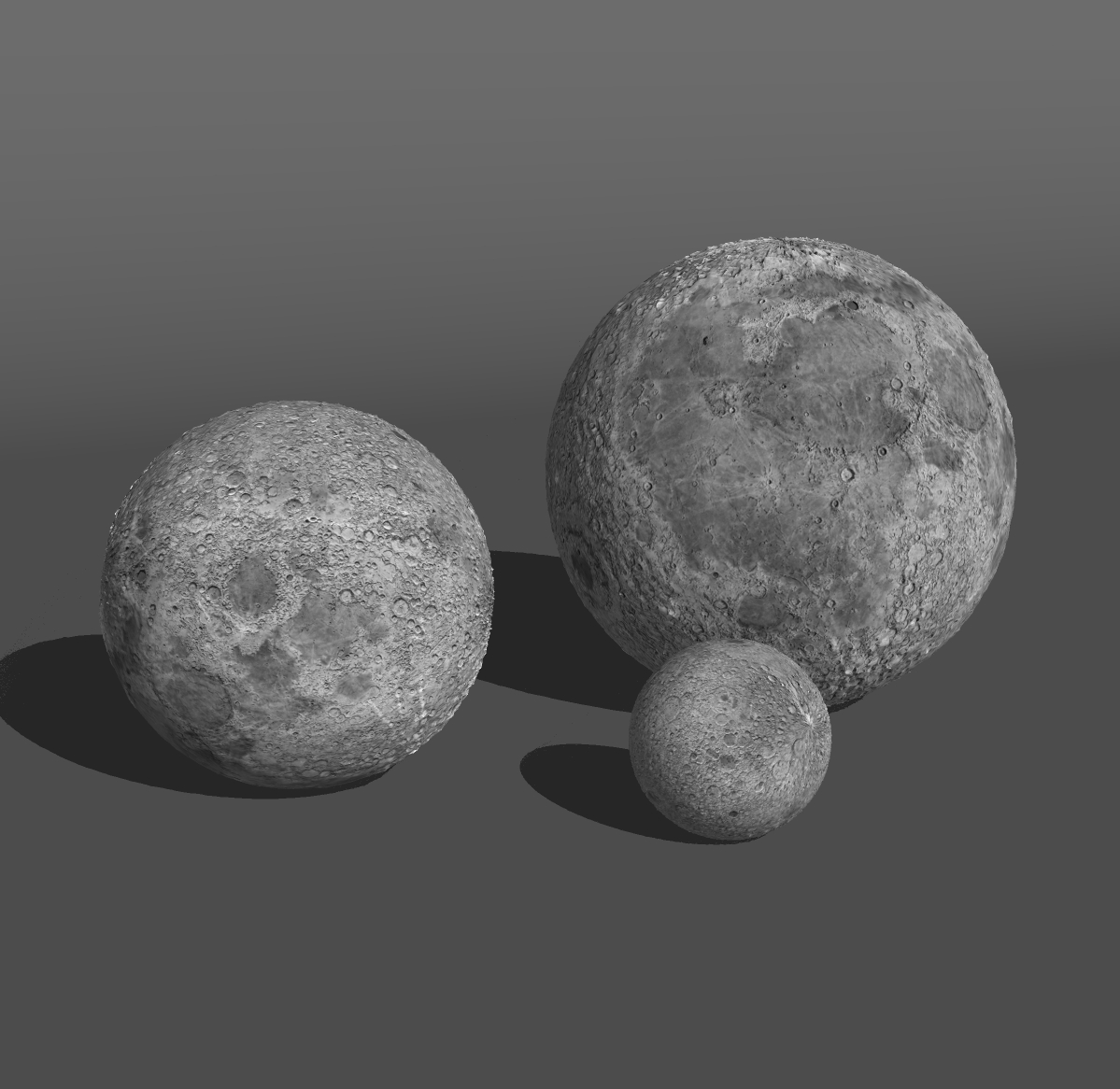 Mô tả chi tiết hình ảnh là các mô hình 3D của Mặt Trăng với sự đa dạng về kích thước, nhưng cùng chung đặc điểm chi tiết bề mặt như thật. Các chi tiết được tô điểm bởi những miệng núi lửa và các vùng lồi lõm, tái hiện hình ảnh cụ thể và chân thực của Mặt Trăng. Bề mặt được thể hiện một cách tỉ mỉ với ánh sáng và bóng tối, tạo nên một cái nhìn thực tế.