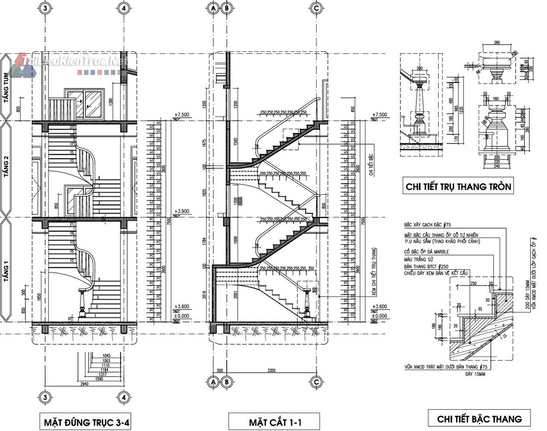 Quy mô: 3 tầng (1 trệt, 2 lầu, 1 tum/mái).