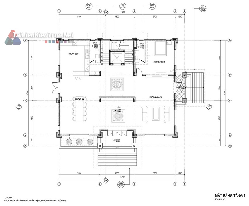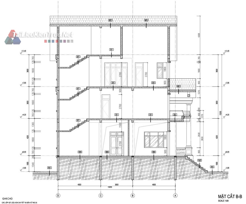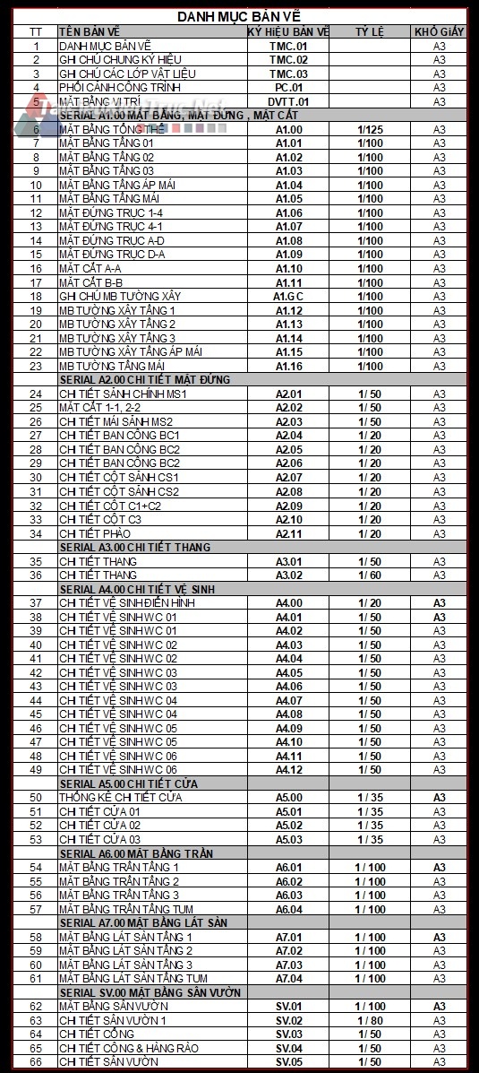 Bộ hồ sơ này bao gồm đầy đủ các bản vẽ thi công phần kiến trúc: