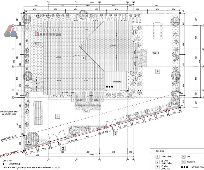 - Mặt bằng tổng thể, mặt bằng các tầng, mặt đứng, mặt cắt