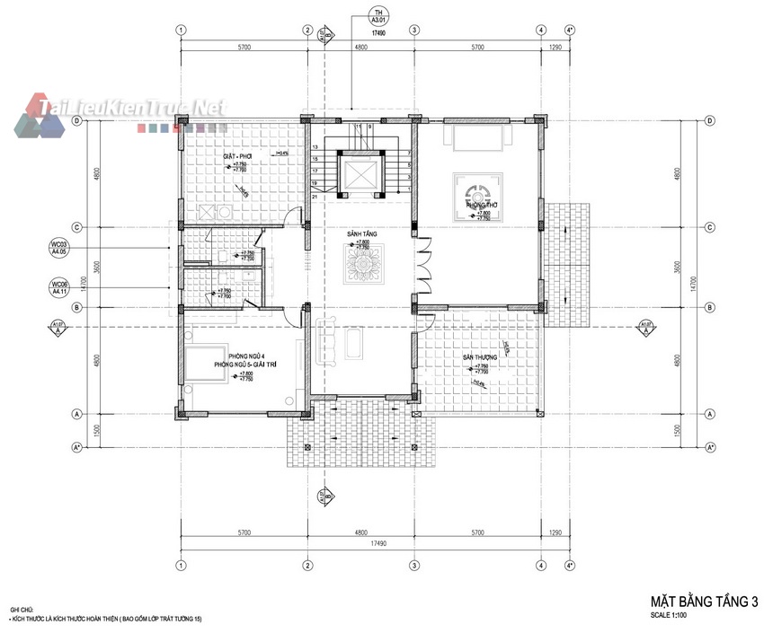 266. Hồ sơ thiết kế biệt thự 3 tầng 14.7x17.5m full kiến trúc
