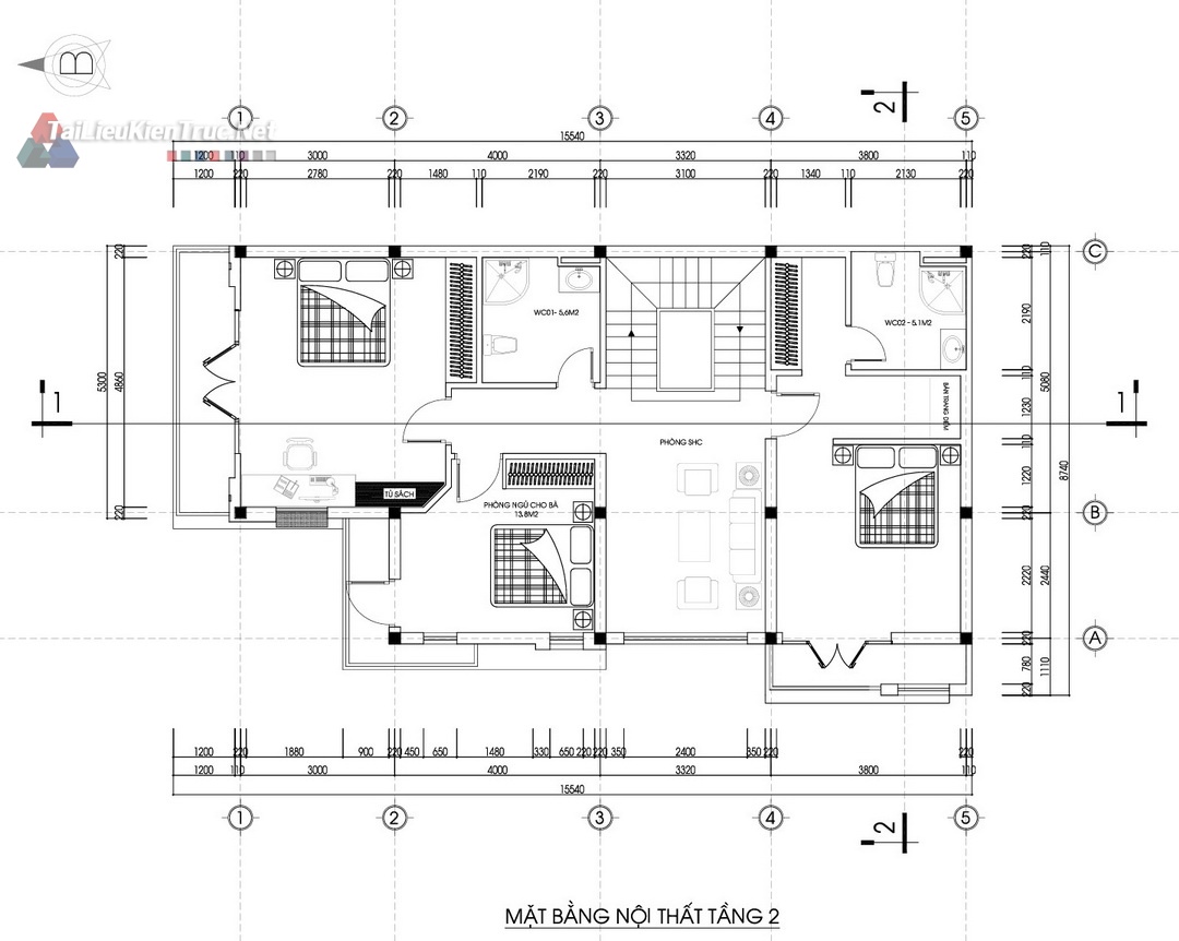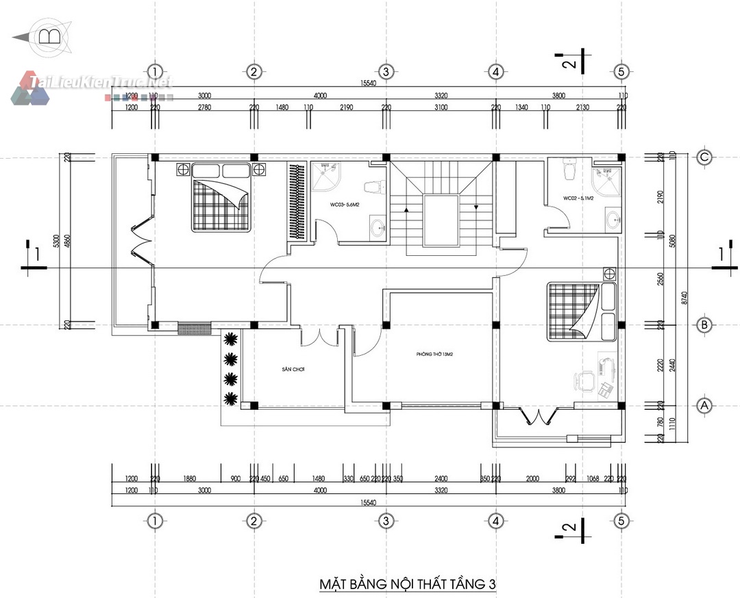 Tầng 2: Khu vực sinh hoạt riêng với 3 Phòng Ngủ, Phòng Sinh Hoạt Chung và WC khép kín hoặc chung, tối ưu sự tiện nghi cho các thành viên trong gia đình.