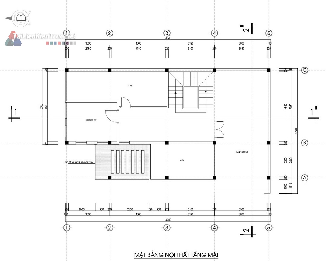 Tầng Mái: Bao gồm các khu vực Kho, WC VIP và Sân Thượng, tận dụng triệt để không gian trên cao.