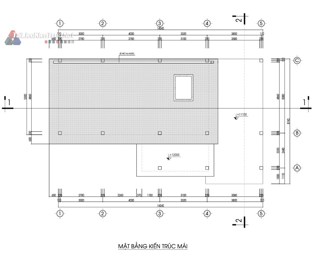 Bản vẽ Mặt bằng kiến trúc Mái và Kết cấu (dù không hiển thị chi tiết nhưng là thành phần tiêu chuẩn) giúp đảm bảo sự vững chắc và tính toán thoát nước.