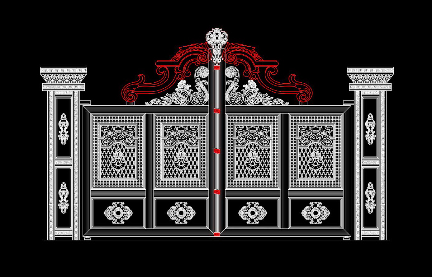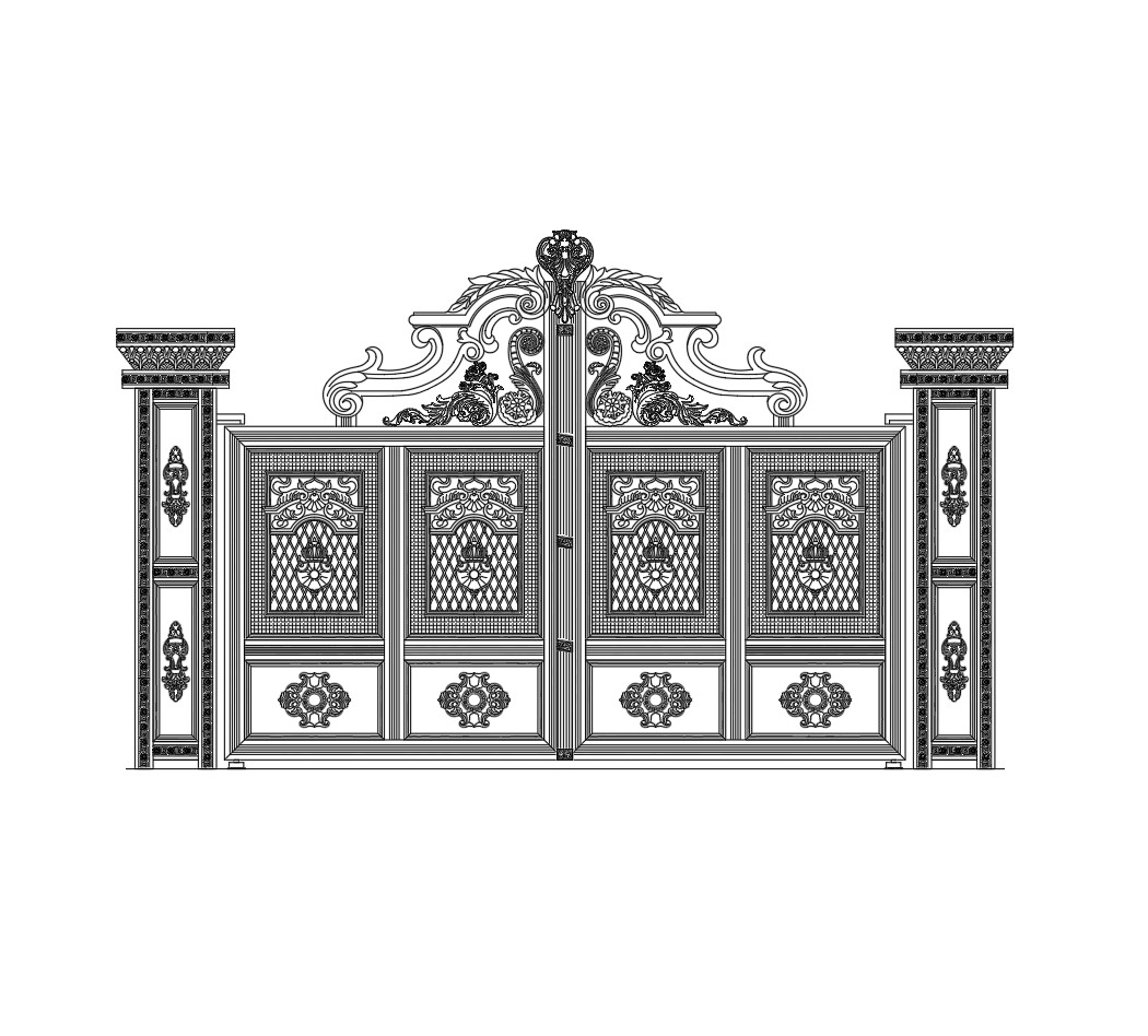 • 29. Thư viện file DWG cổng biệt thự hoàng gia kèm trụ cột trang trí tinh xảo