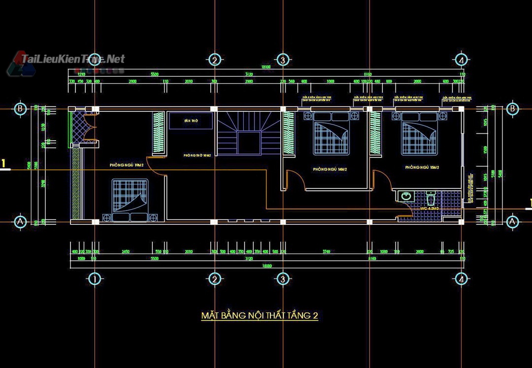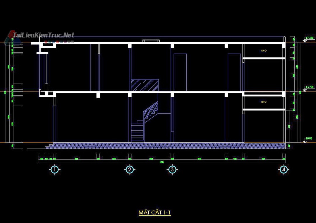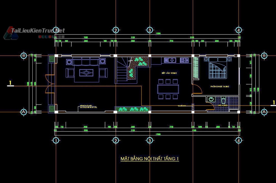 • 296. Hồ sơ thiết kế nhà phố 2 tầng 5.5x17m phần kiến trúc kết cấu