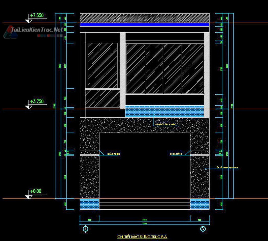 296. Hồ sơ thiết kế nhà phố 2 tầng 5.5x17m phần kiến trúc kết cấu