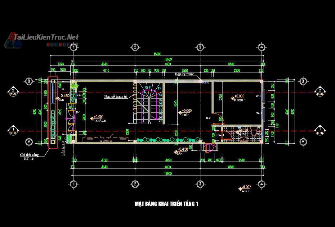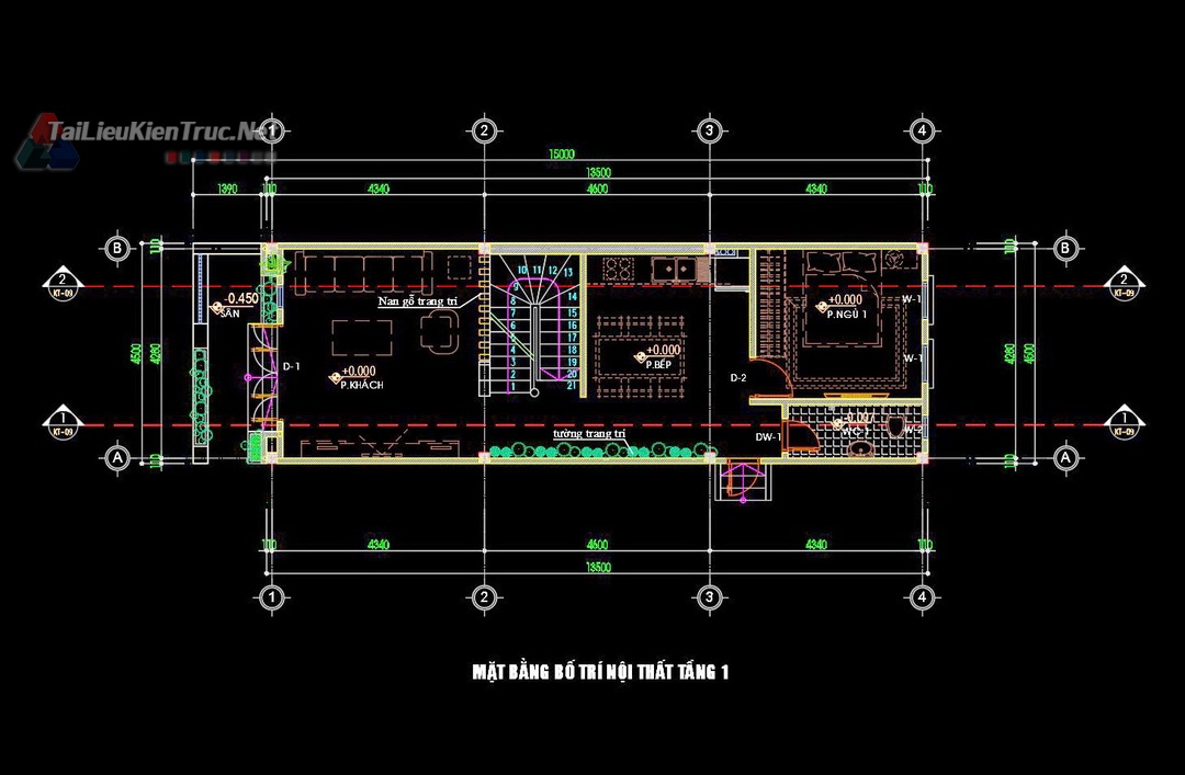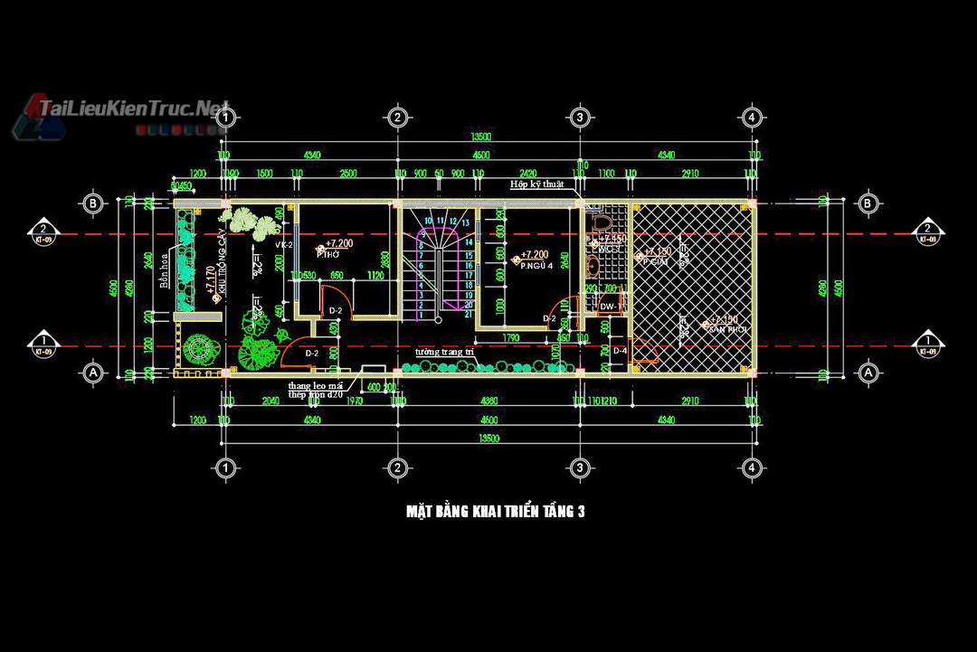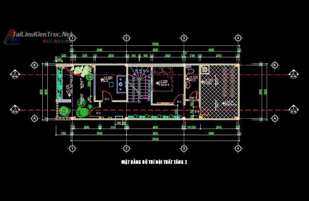 297. Hồ sơ thiết kế nhà phố 3 tầng 4.5x13.5m full kiến trúc kết cấu
