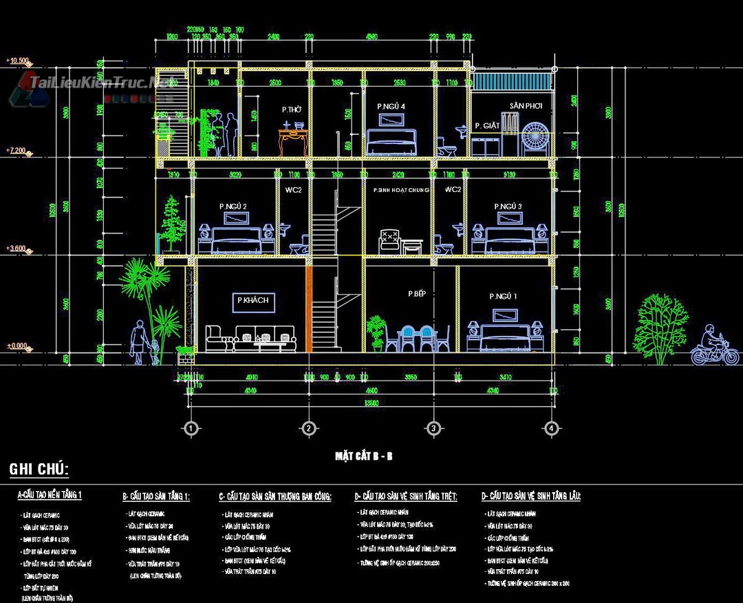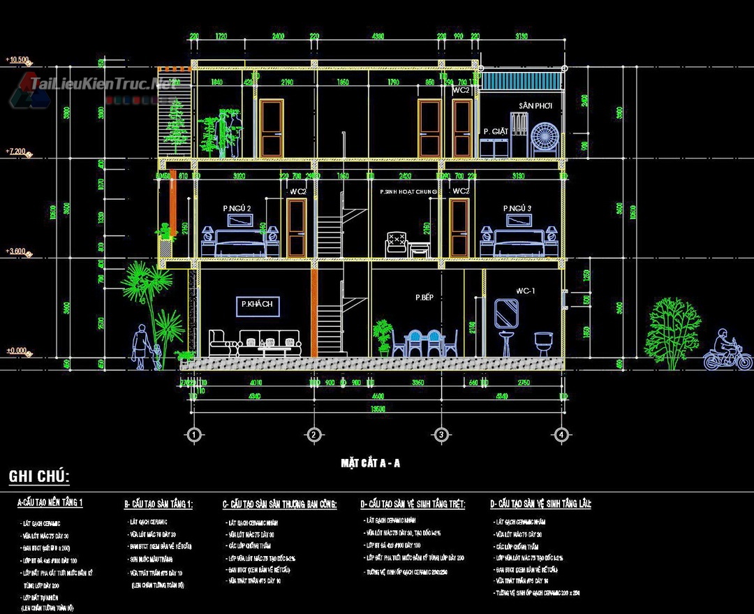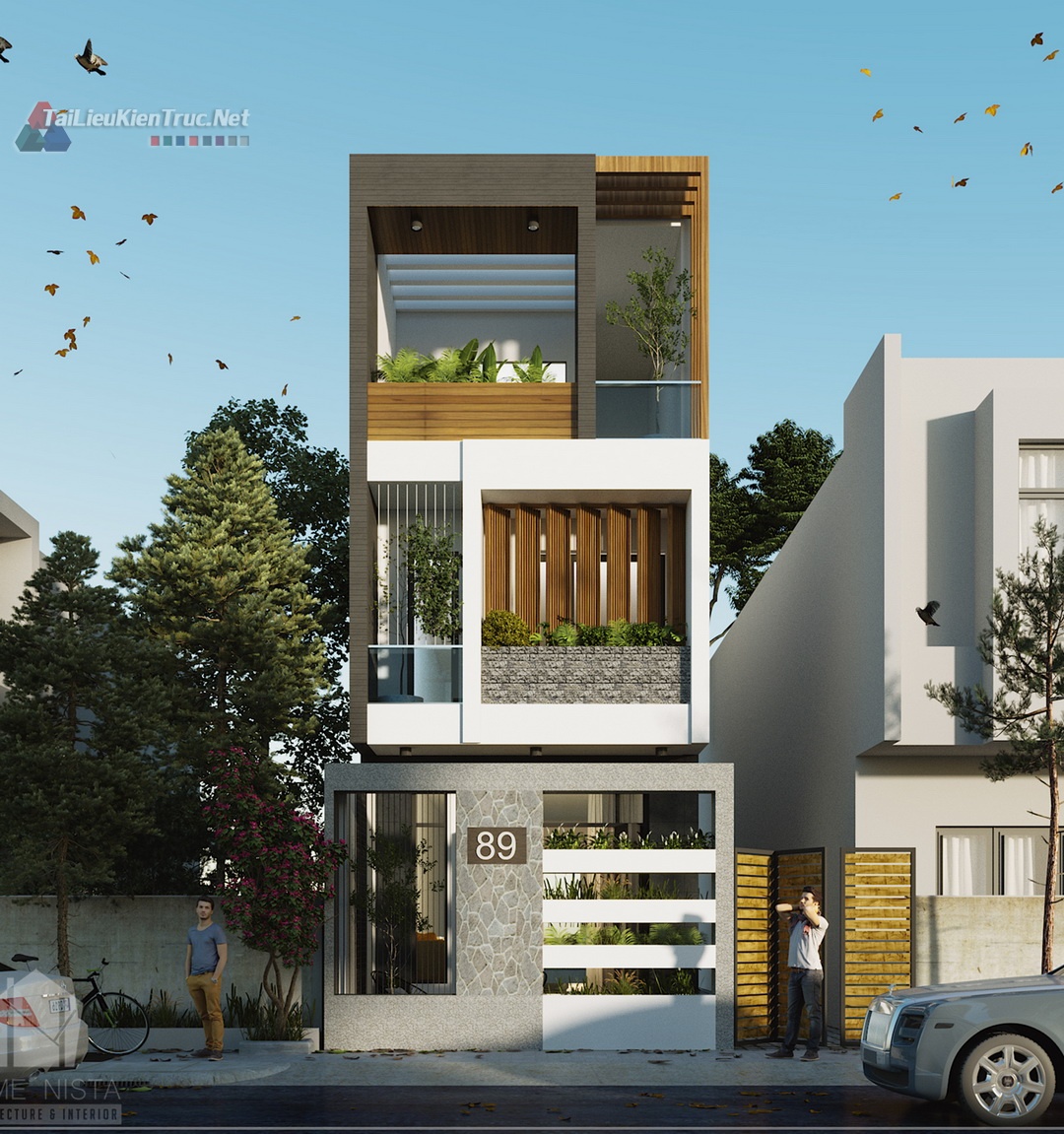 • 297. Hồ sơ thiết kế nhà phố 3 tầng 4.5x13.5m full kiến trúc kết cấu