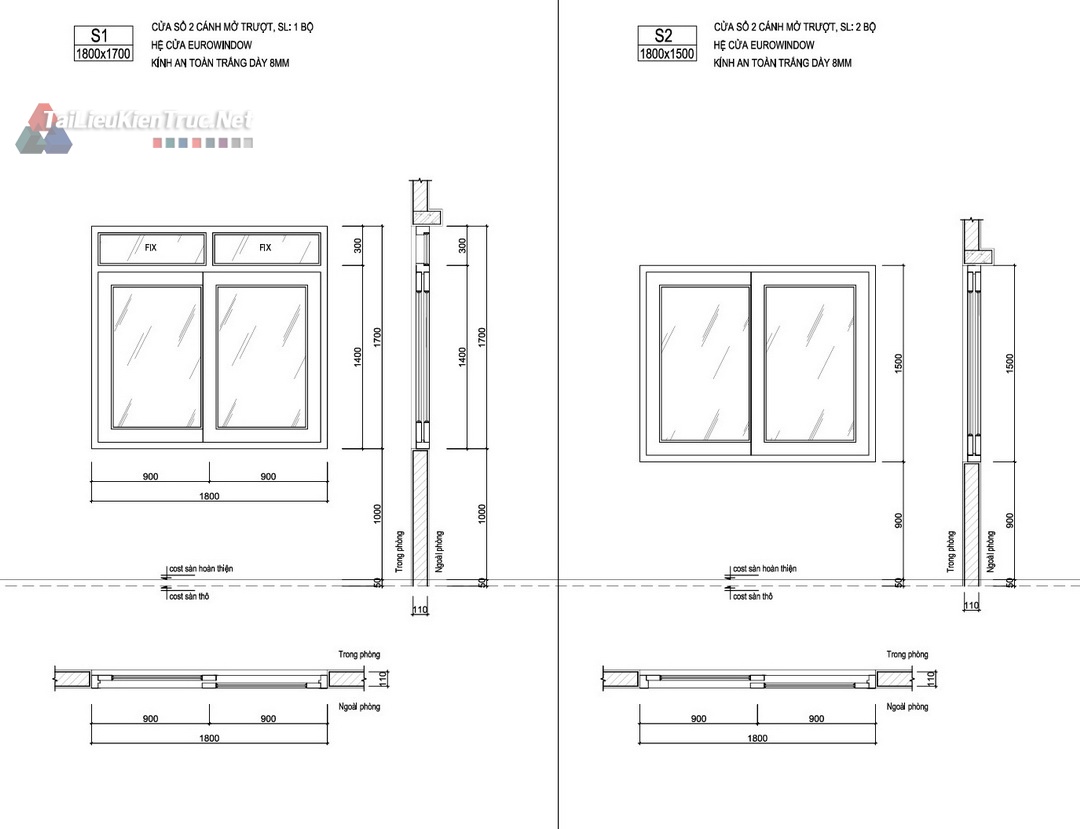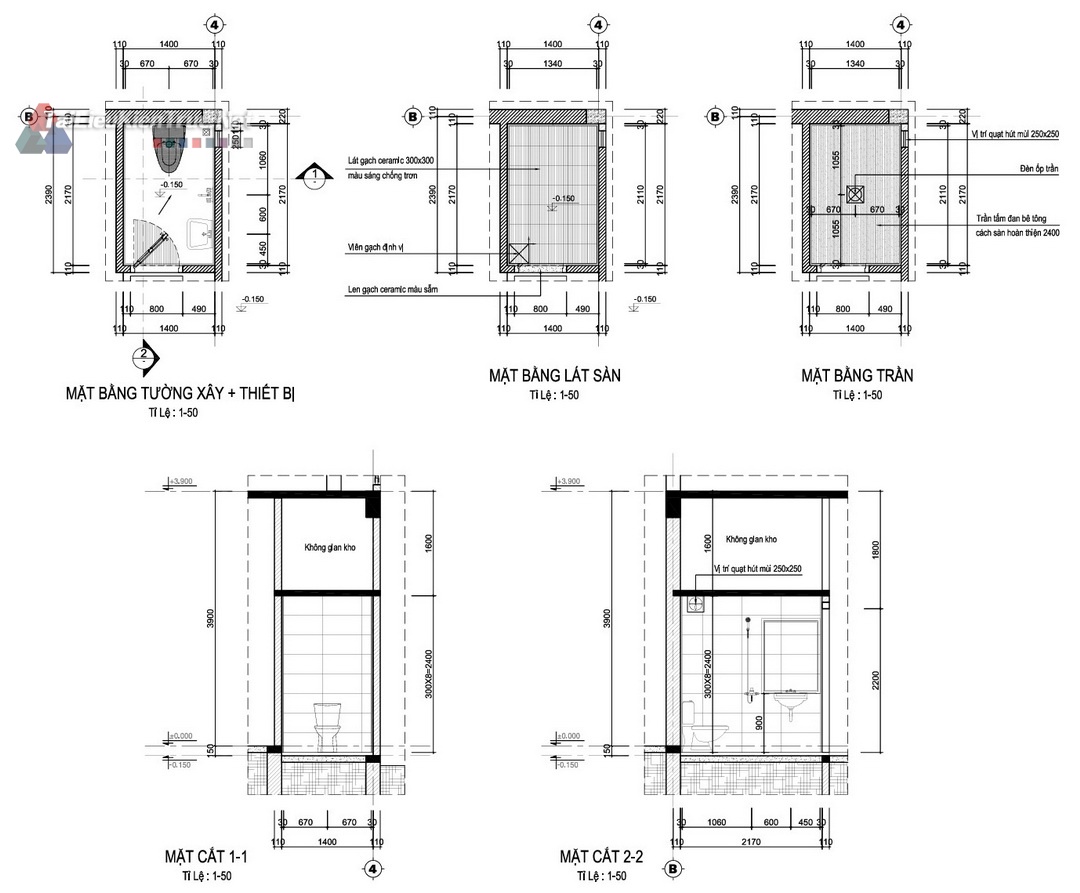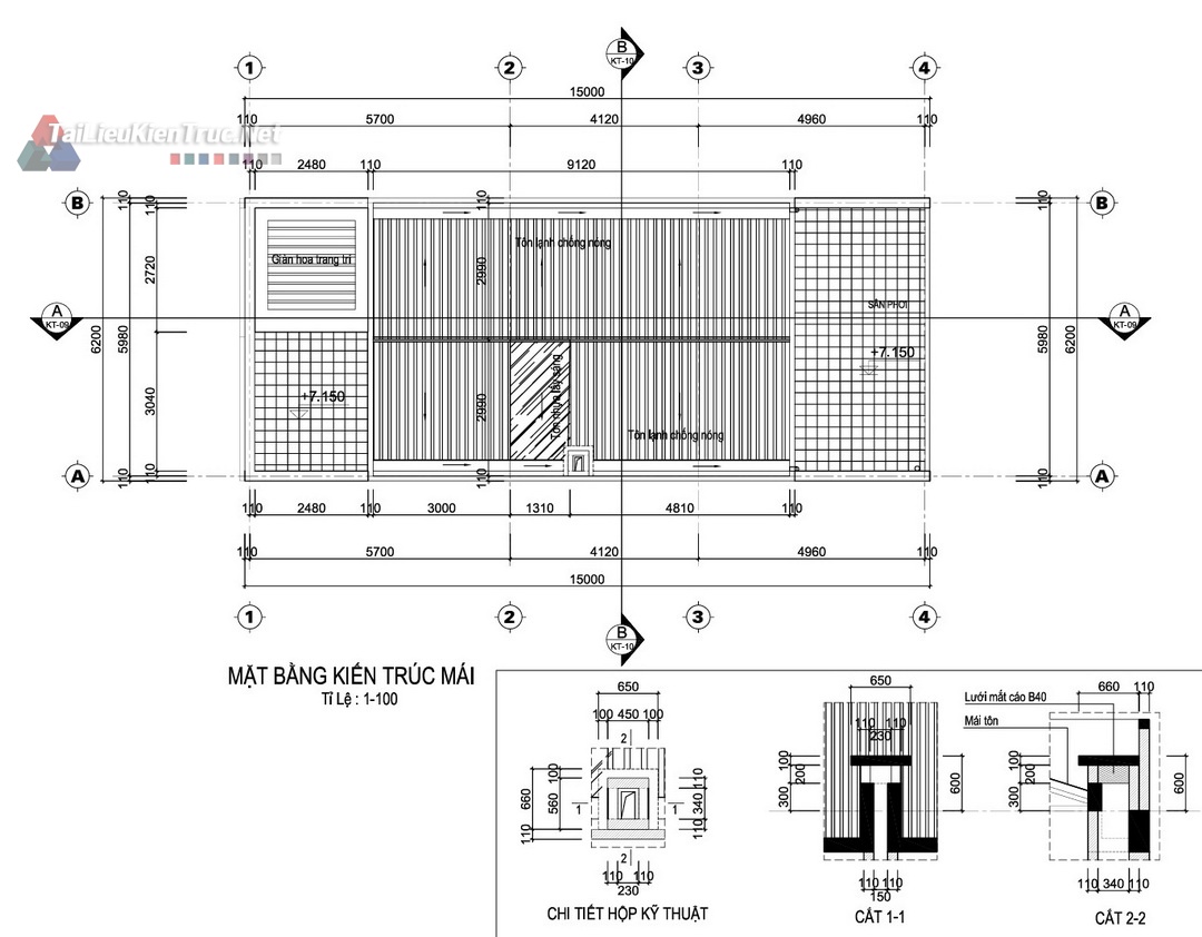 1. Bản vẽ Kiến trúc 2D (Tỷ lệ 1:100):