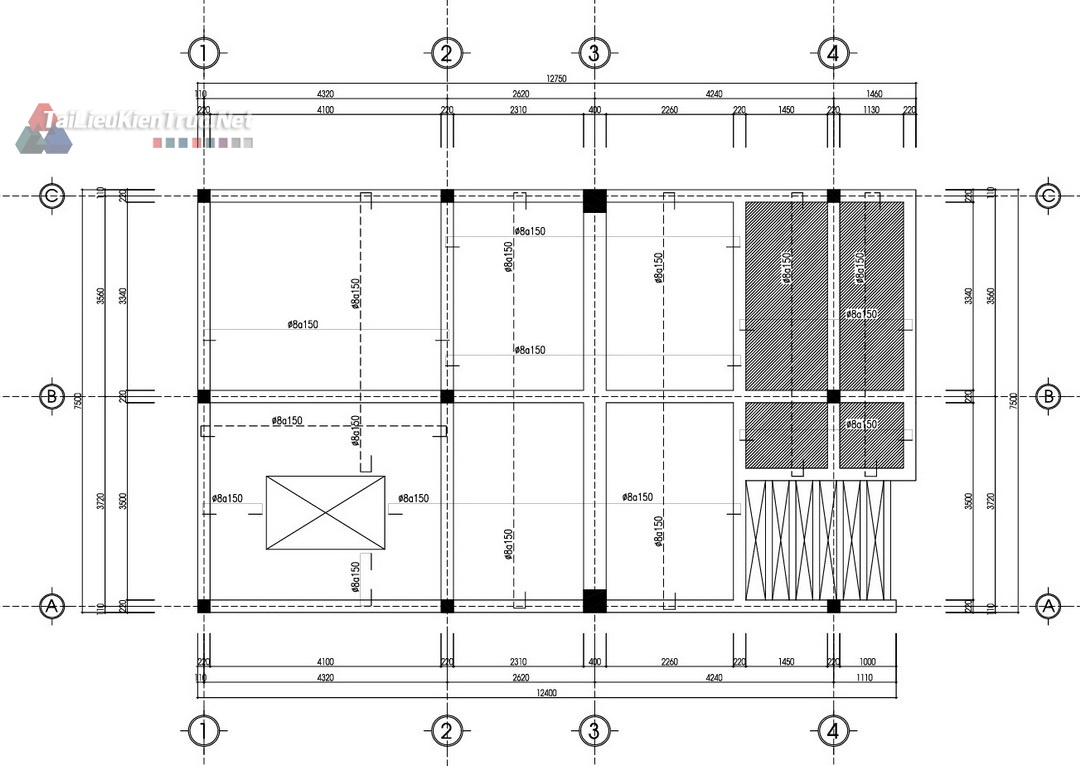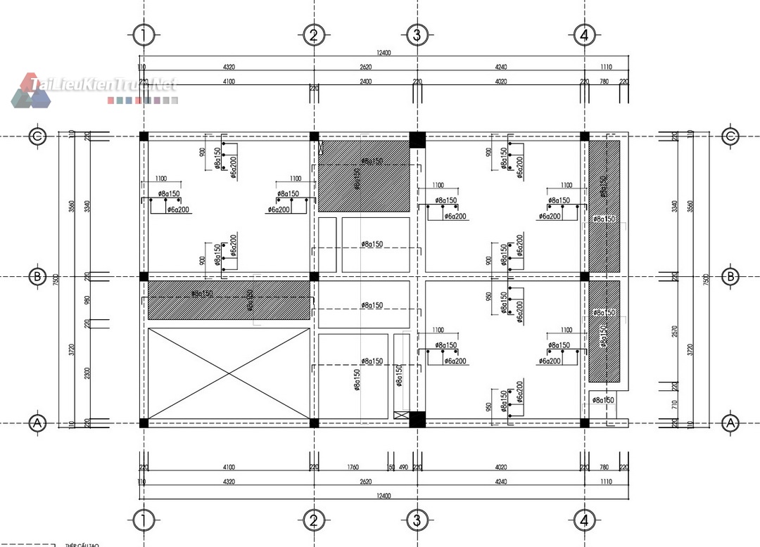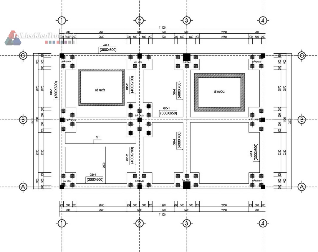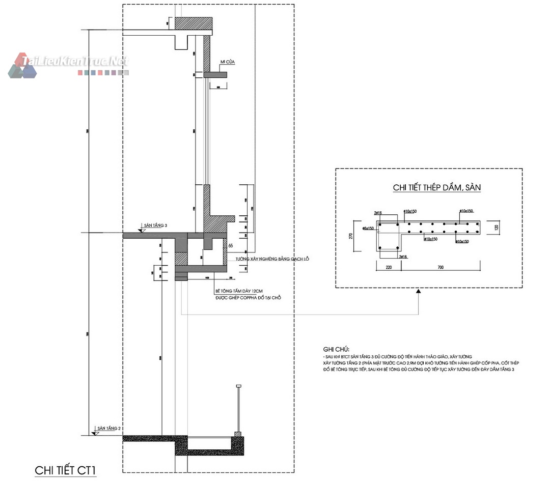 Kết cấu: Bản vẽ chi tiết dầm, sàn, cột, móng, và chi tiết cốt thép (Ví dụ: Chi tiết thép Dầm, Sàn).