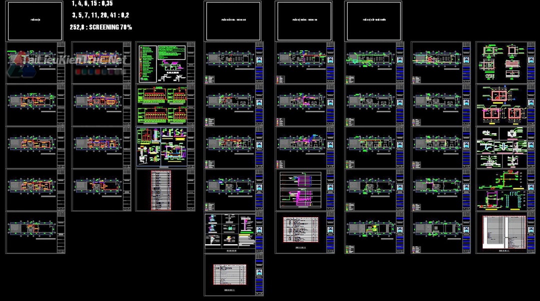 Hồ sơ này không chỉ dừng lại ở mặt bằng công năng mà còn thể hiện sự chuyên nghiệp và độ chi tiết cao, đáp ứng mọi yêu cầu về thi công: