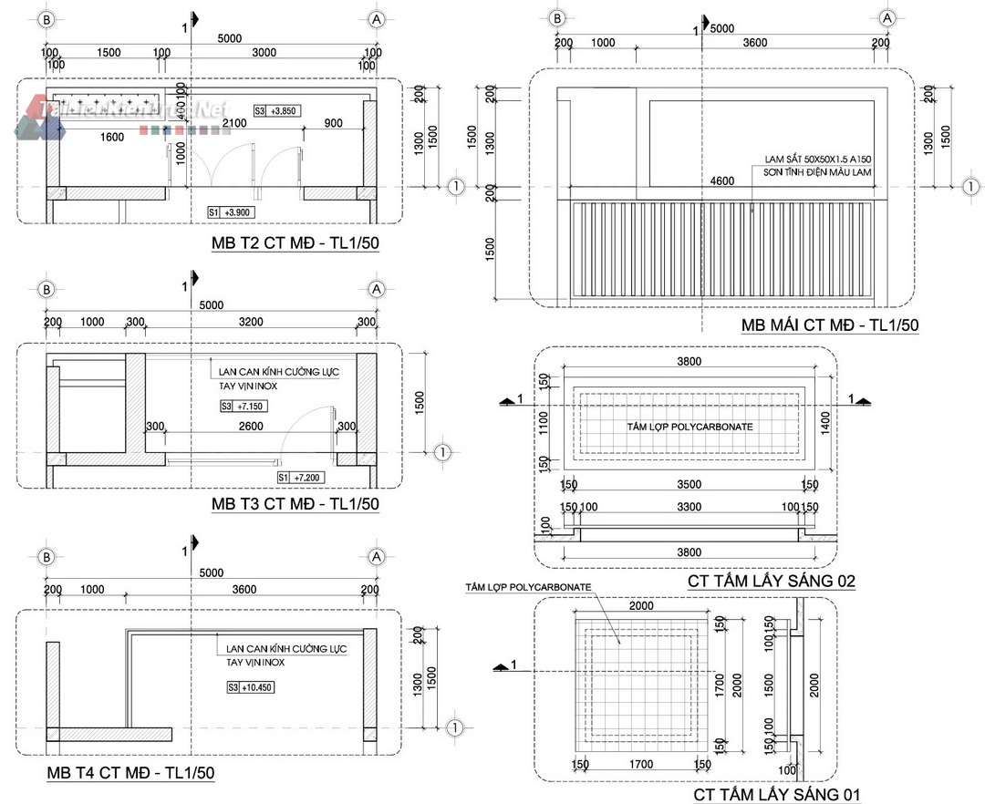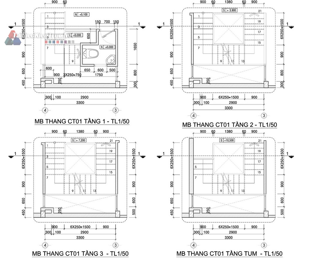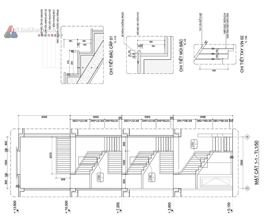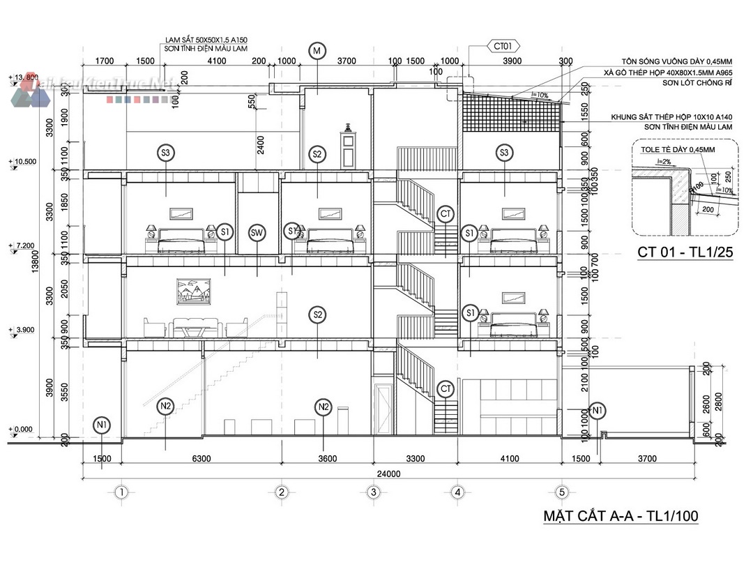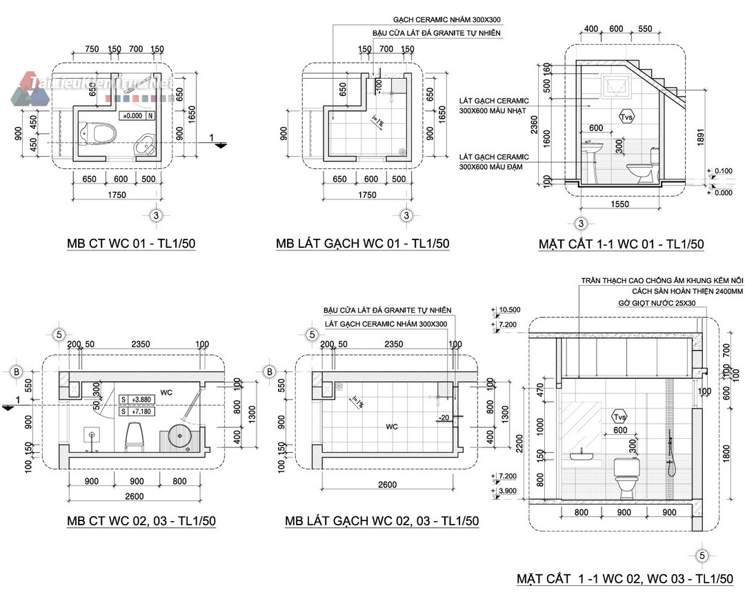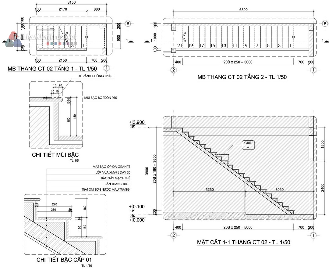 Kết Cấu: Thể hiện rõ ràng chi tiết cột, dầm, sàn, móng, và các giải pháp chống thấm.