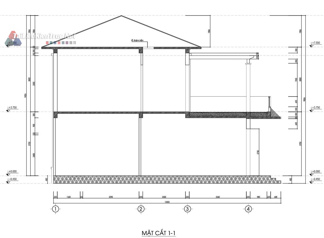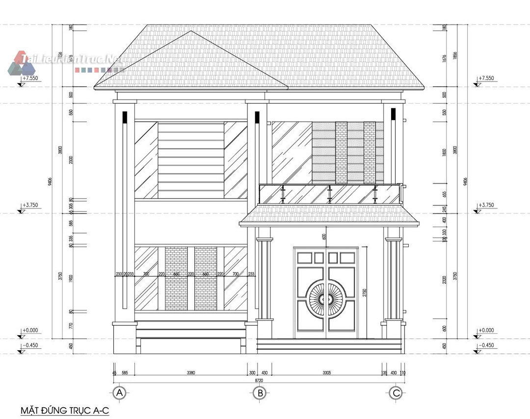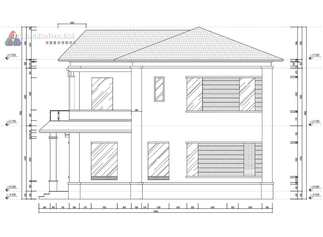 306. Hồ sơ thiết kế nhà phố 2 tầng mái nhật 8.5x11.5m full kiến trúc kết cấu và phối cảnh sketchup