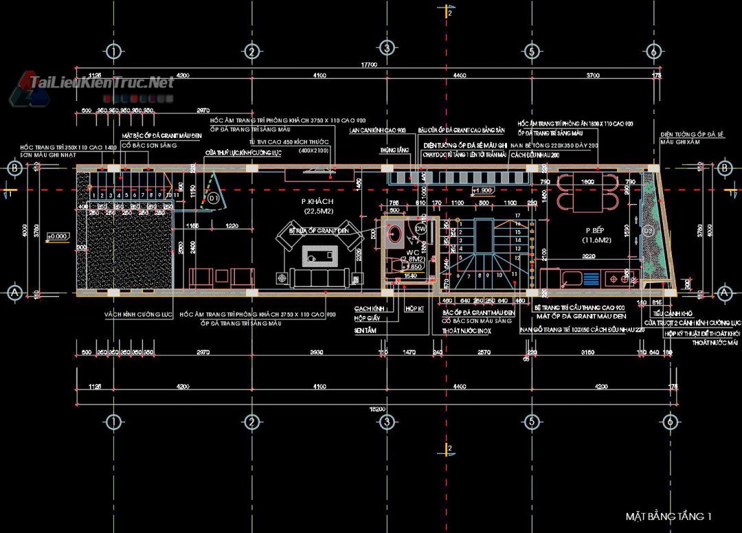 Bước lên từ tầng trệt (cốt 0.000), không gian mở ra với: