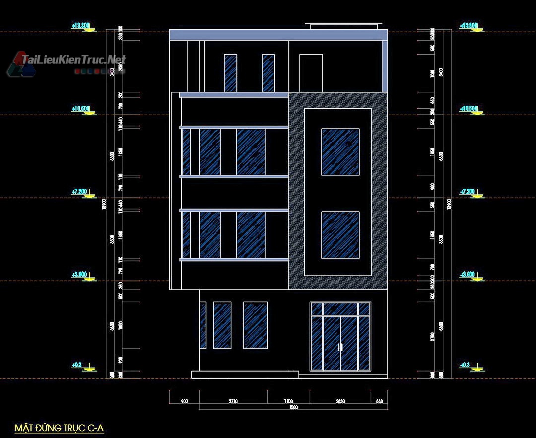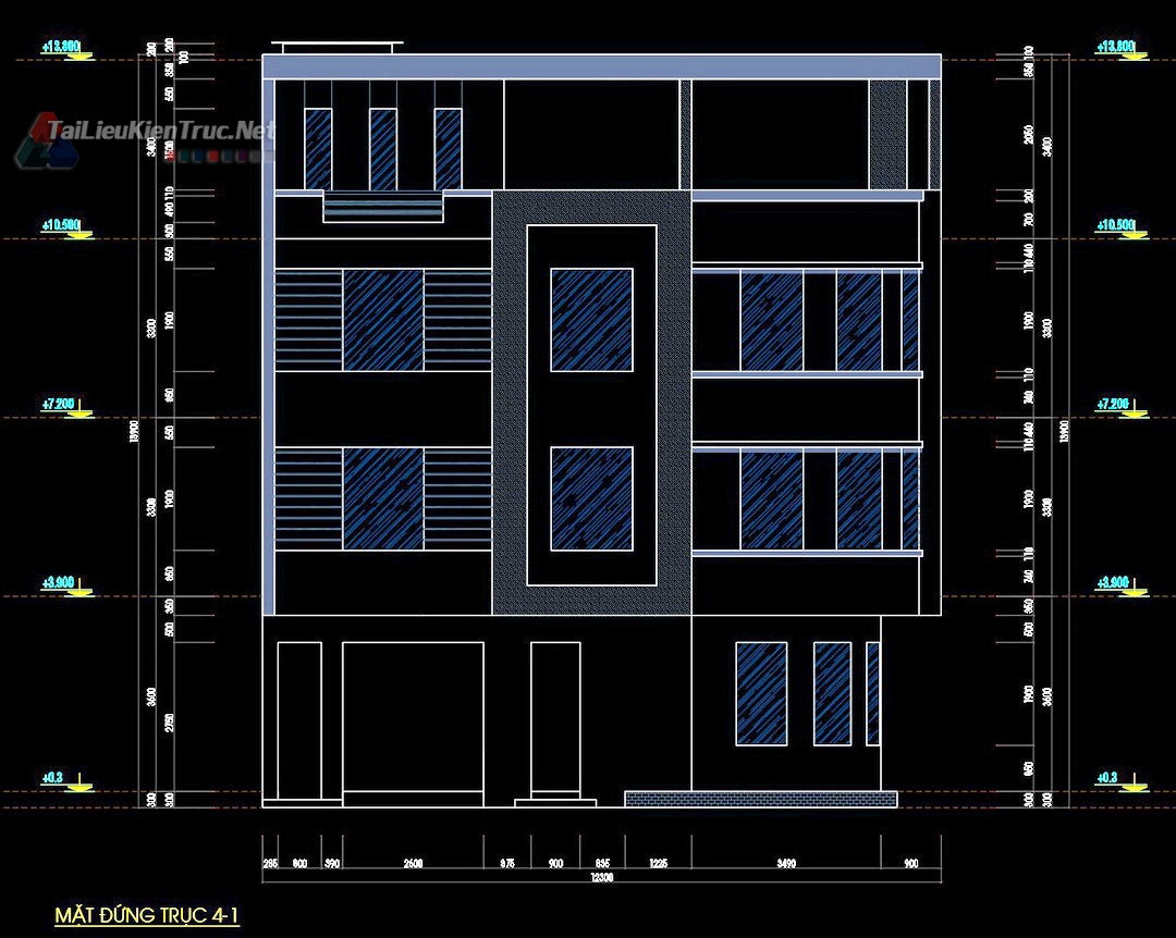 309. Hồ sơ thiết kế nhà phố 4 tầng 7.5x11.4m full kiến trúc kết cấu điện nước phối cảnh dự toán