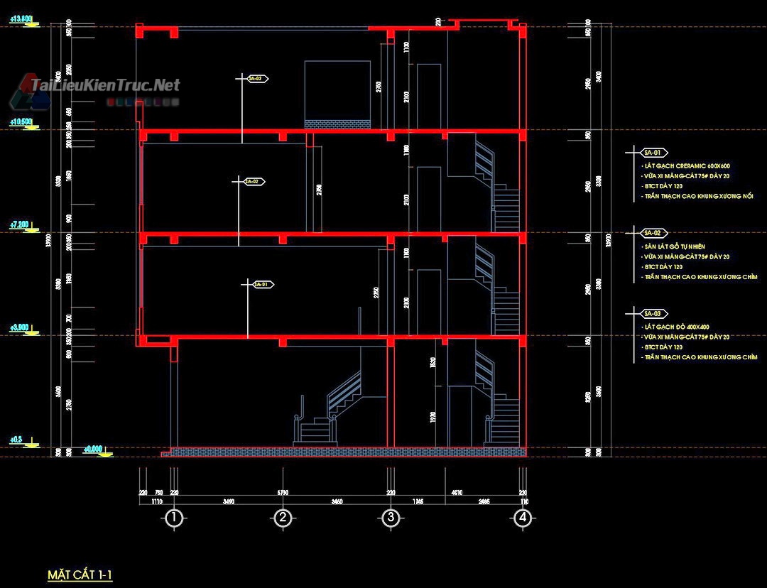 • 309. Hồ sơ thiết kế nhà phố 4 tầng 7.5x11.4m full kiến trúc kết cấu điện nước phối cảnh dự toán