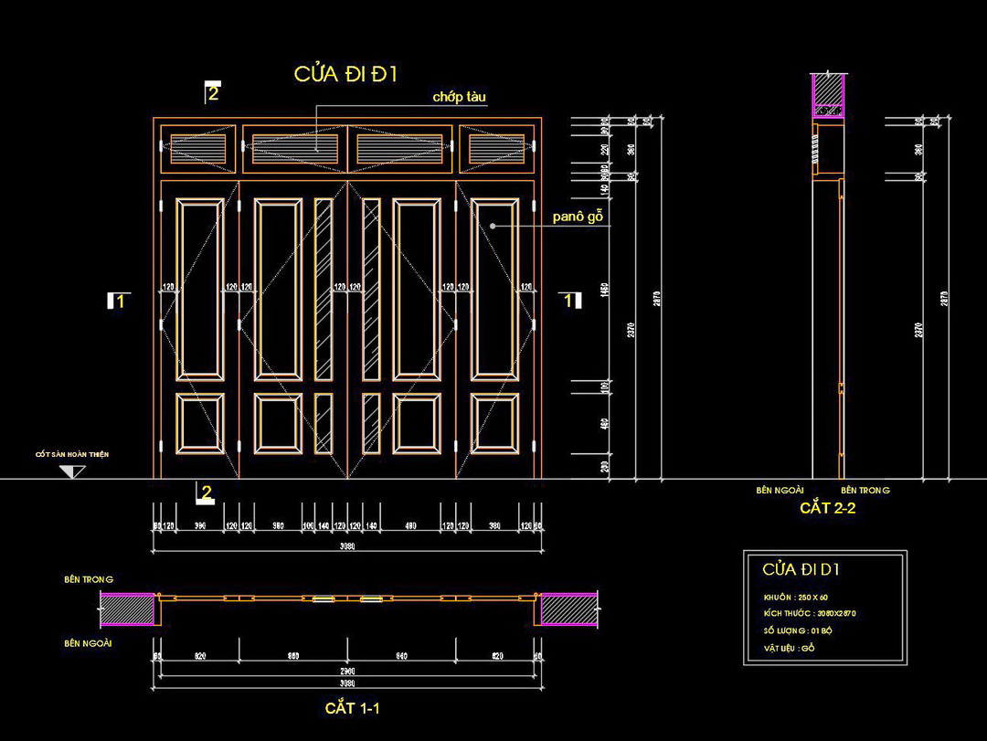Bản vẽ trình bày chi tiết từng phần của cửa, từ khung gỗ đến hệ thống kính chớp, giúp các nhà thiết kế có cái nhìn rõ nét và cụ thể về cấu trúc cũng như cách lắp ráp từng bộ phận. Các đường nét trong bản vẽ được thể hiện rõ ràng, không gian 3 chiều cho phép dễ dàng hình dung sản phẩm cuối cùng.
