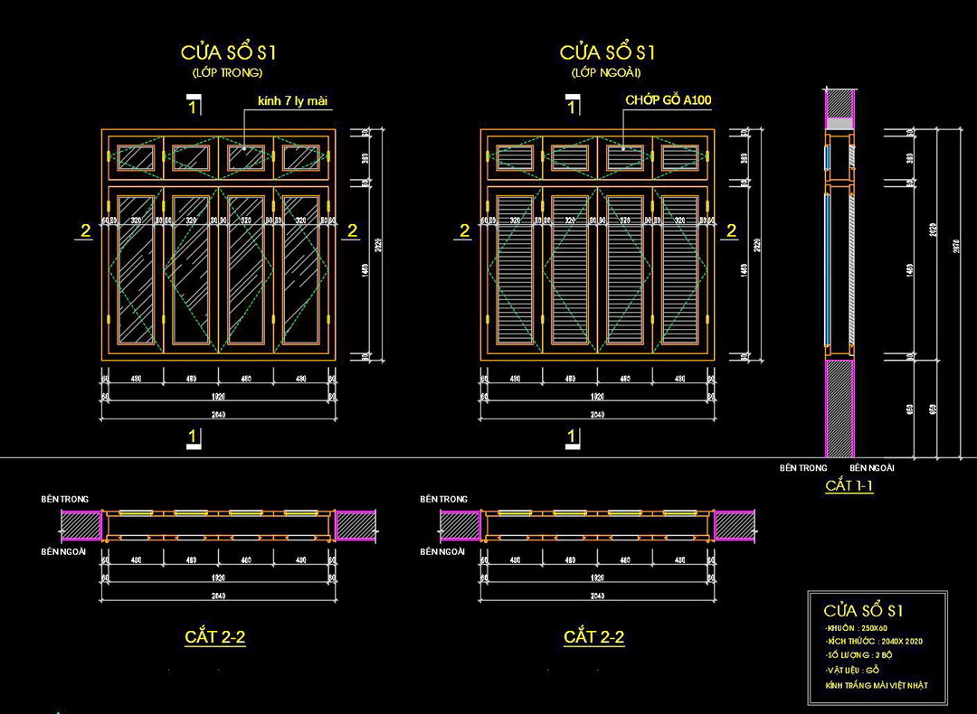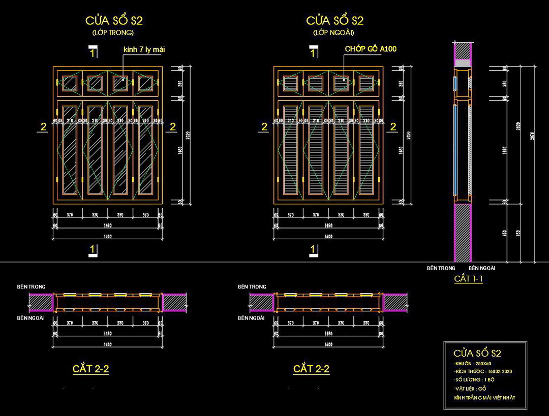Bản vẽ ứng dụng thực tế trong việc lập kế hoạch và triển khai thi công cửa và cửa sổ gỗ kính chớp, từ đó đảm bảo chất lượng công trình và an toàn khi sử dụng. Với kích thước tiêu chuẩn và chất liệu gỗ bền chắc, sản phẩm phù hợp trang bị cho các công trình nhà ở, văn phòng hay khu nghỉ dưỡng cao cấp.