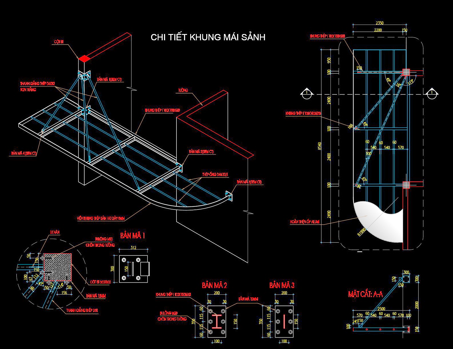 Bản vẽ chi tiết trong tài liệu phản ánh chính xác các yếu tố kỹ thuật của khung mái sảnh, cung cấp một cái nhìn toàn diện về thiết kế và cấu trúc.