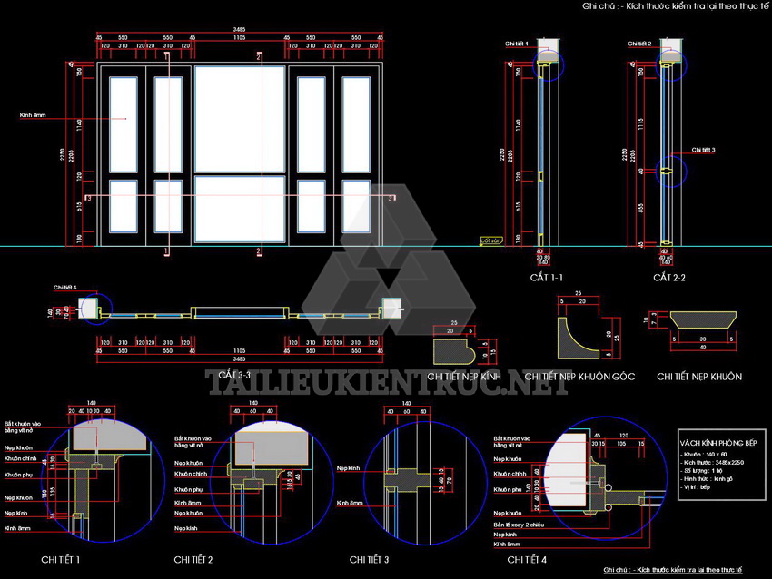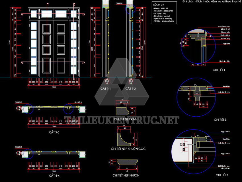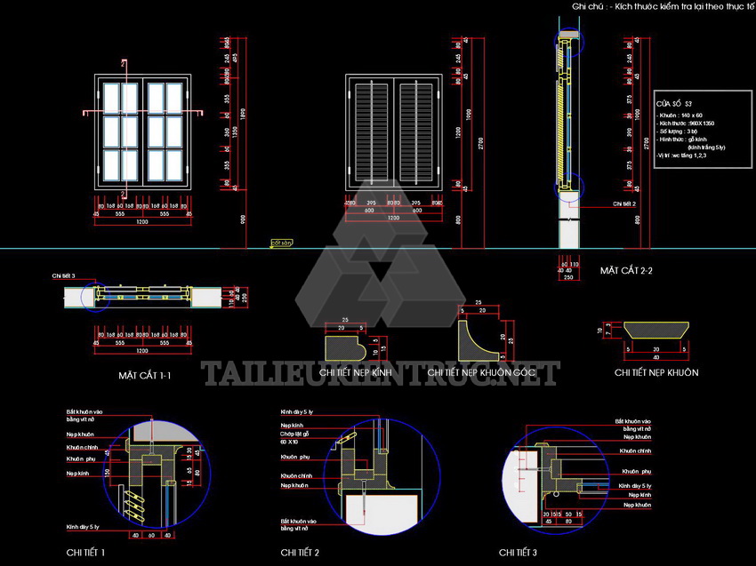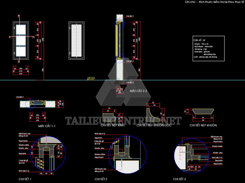 Những thiết kế này mang lại lợi ích lớn cho việc tiết kiệm thời gian nghiên cứu và triển khai, đồng thời giúp cải thiện hiệu suất công việc. Các chi tiết như khung cửa, nẹp kính, và các mặt cắt đi kèm thông số kích thước chính xác giúp người dùng dễ dàng hình dung và áp dụng.