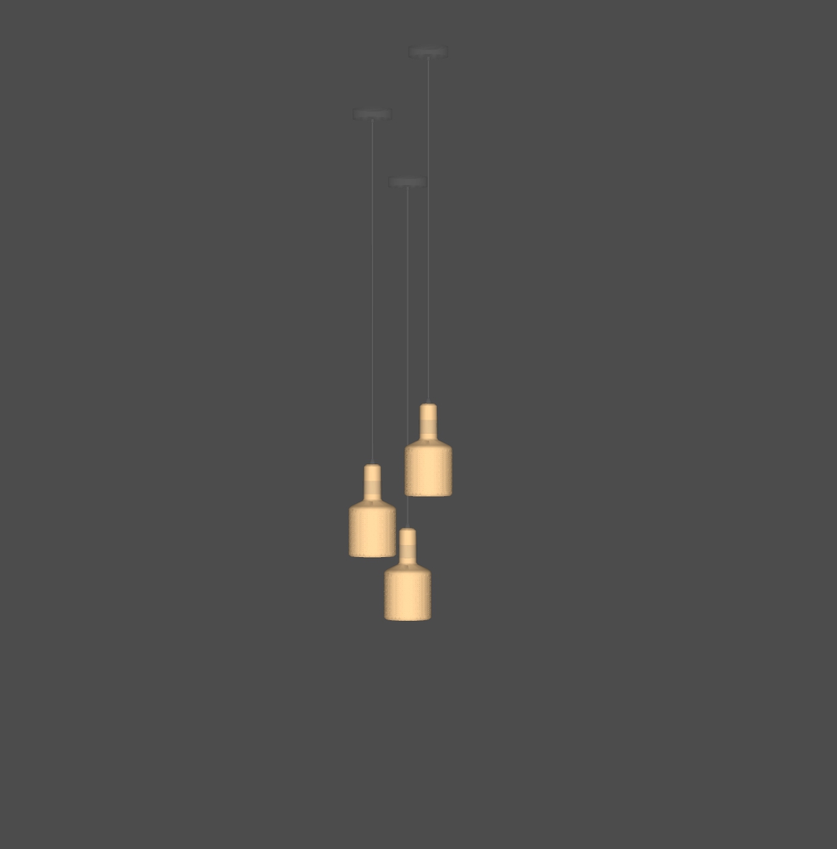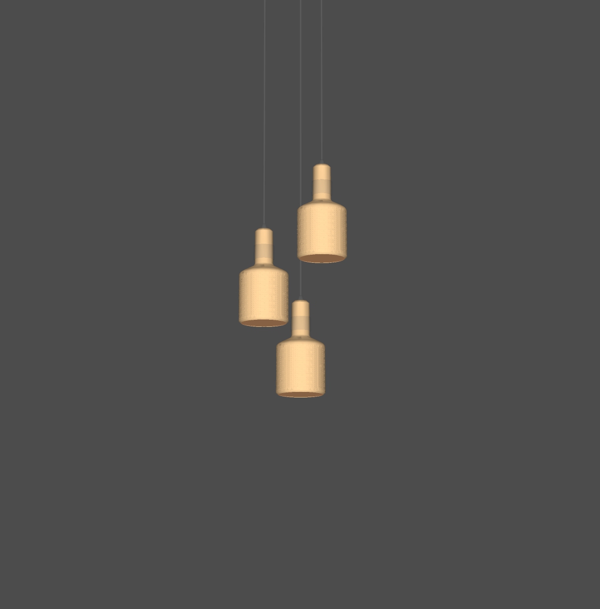 Bộ đèn treo được thiết kế với ba chiếc đèn hình trụ thon dài, treo thẳng từ trần nhà. Với bề mặt ánh kim, đèn tỏa ra ánh sáng dịu nhẹ, tạo cảm giác ấm áp và dễ chịu trong mọi không gian sống. Bộ đèn này không chỉ đơn thuần là một thiết bị chiếu sáng, mà còn là điểm nhấn nghệ thuật cho không gian.