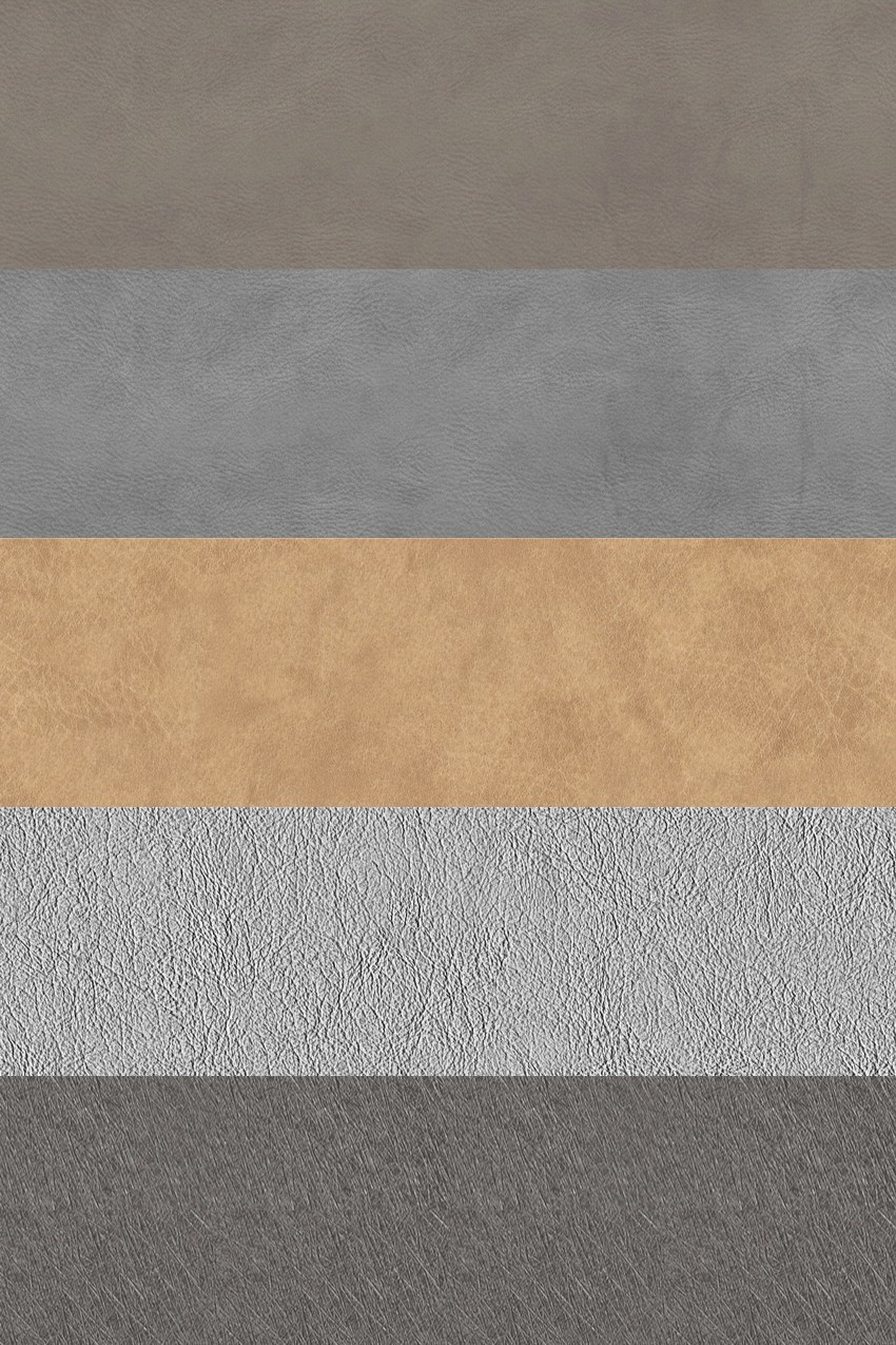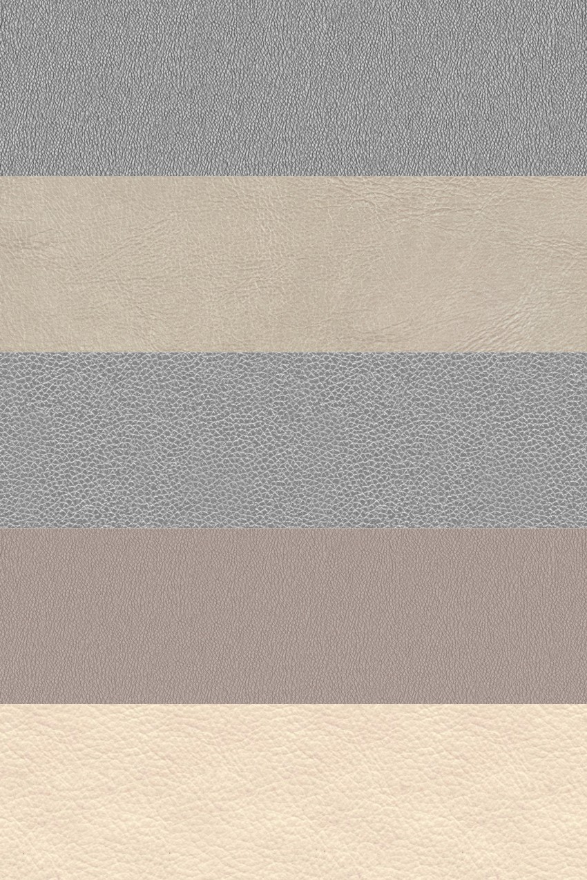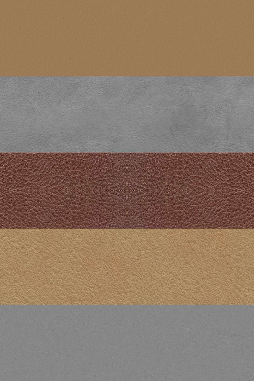 Những mẫu da này đại diện cho một loạt các lựa chọn về màu sắc, từ những tông màu trung tính như nâu, đen, xám, đến các sắc thái tươi sáng hơn như trắng và nâu vàng. Mỗi mẫu đều thể hiện rõ độ bóng, hoa văn, và kết cấu của chất liệu da, tạo nên sự phong phú trong thiết kế.