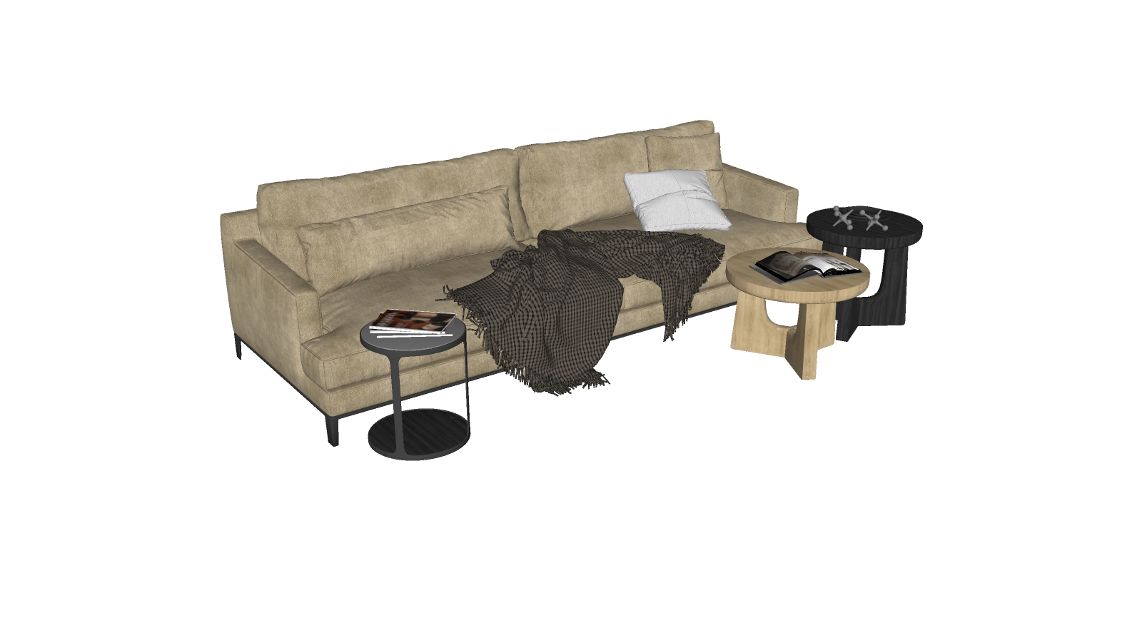 Tải File SketchUp sofa vải bố (Canvas) kèm decor gối ôm và bàn trà nghệ thuật